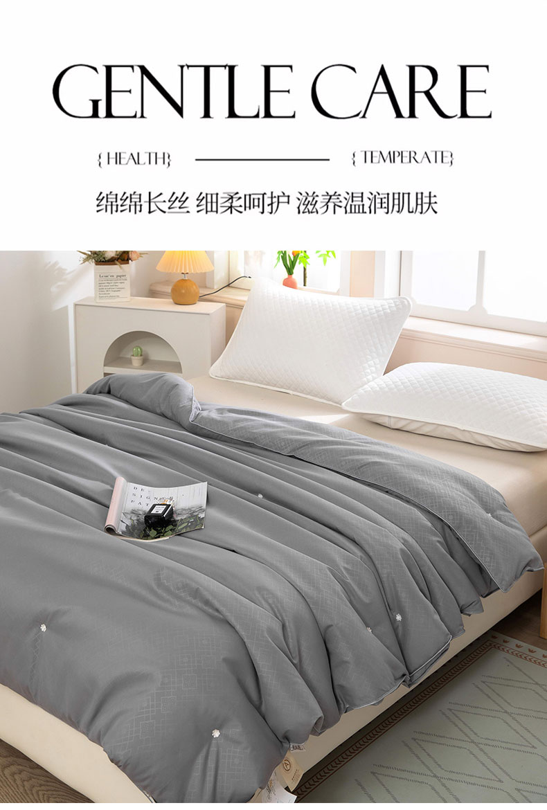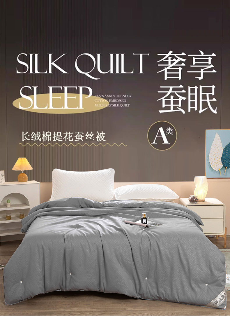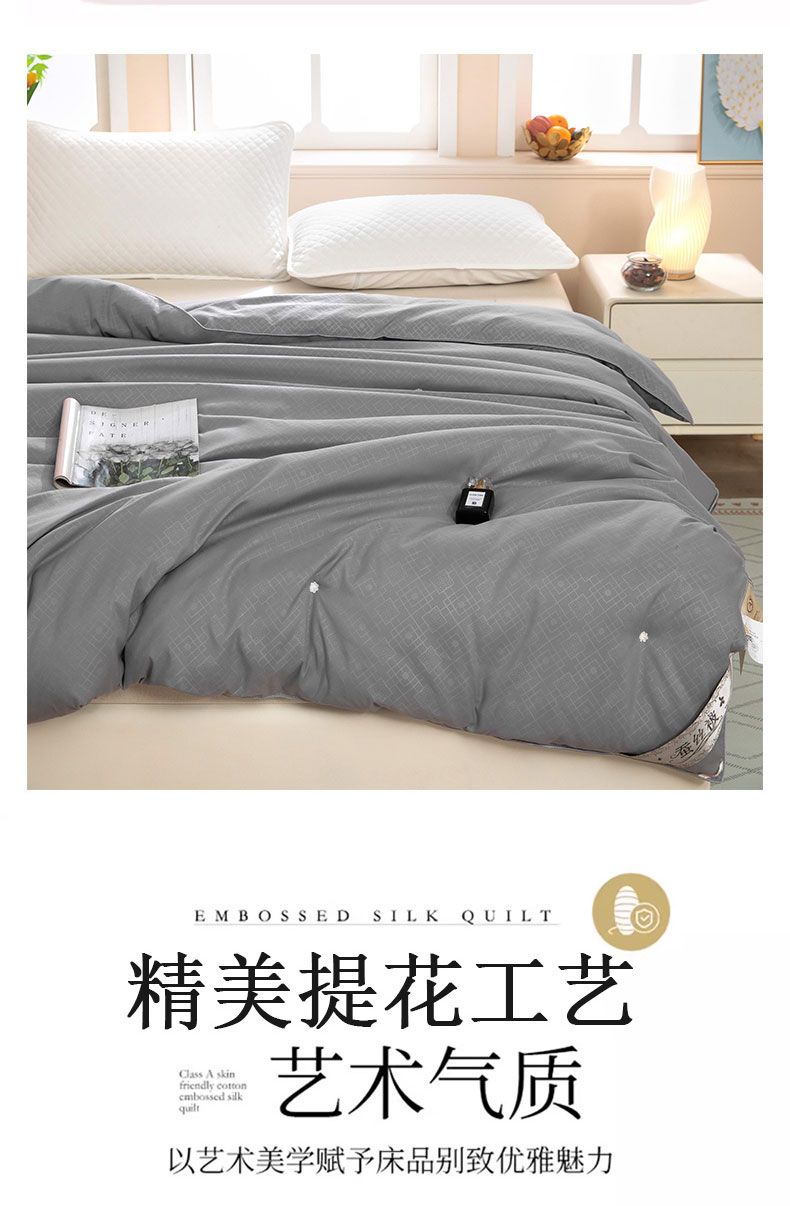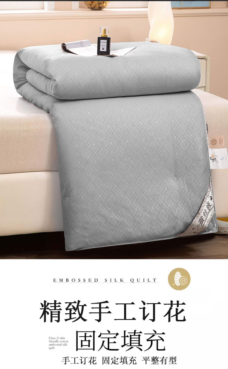 (总)江山被业 2025新款60S手工订花长绒棉蚕丝被缎格提花蚕丝被桑蚕丝被榨蚕丝被夏被春秋被冬被,初恋玉,胭脂红,月光白,神秘灰