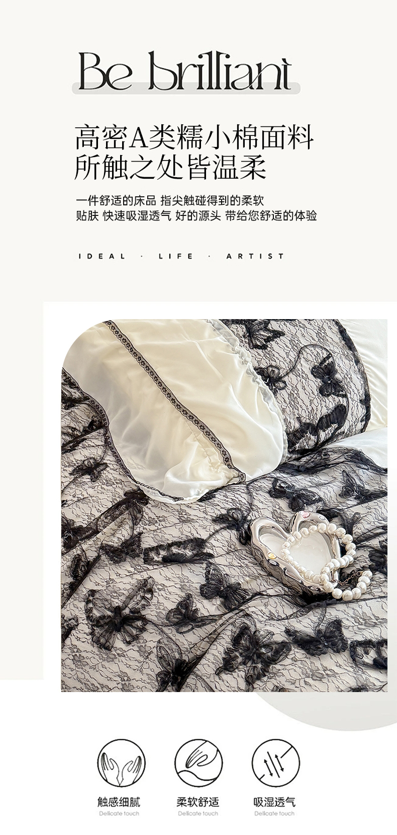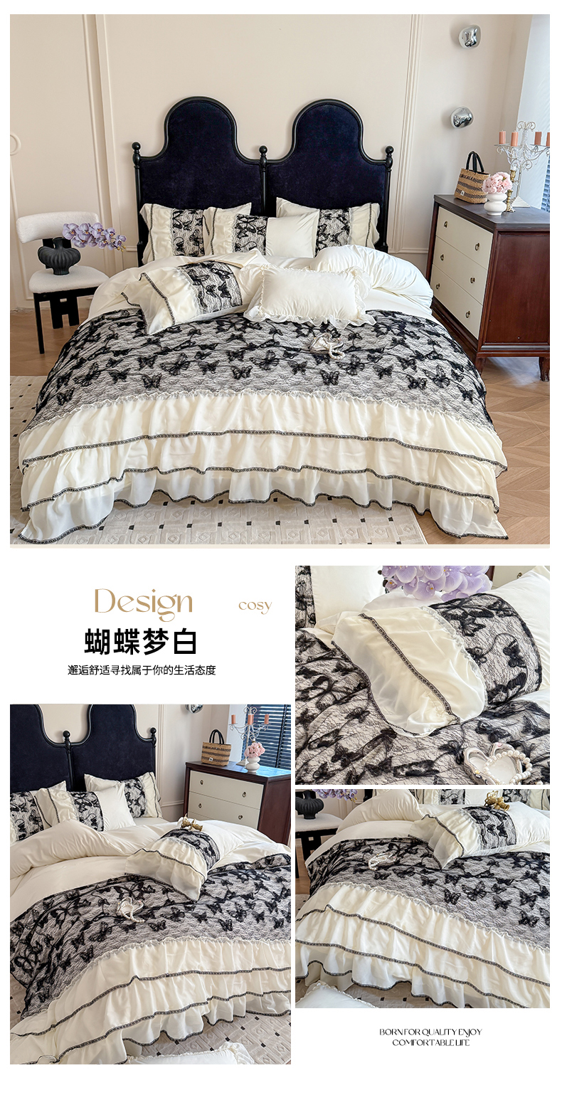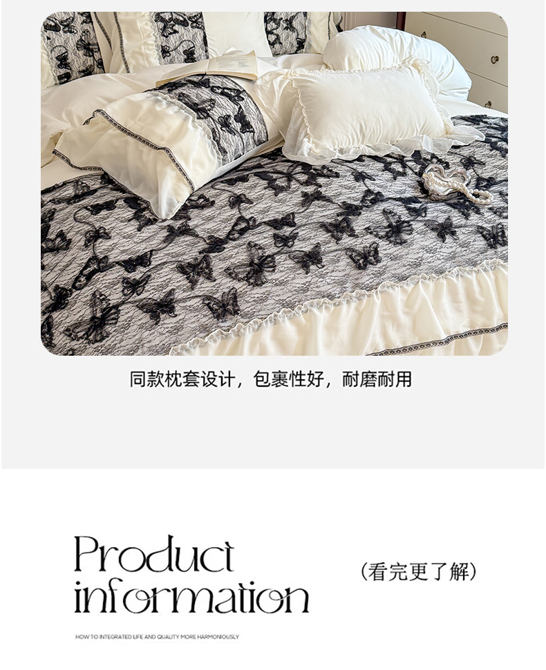 (总)吾欢心 2025新款糯小棉立体蝴蝶花边四件套-蝶恋花系列,蝶恋花白,蝶恋花粉,蝶恋花黄,蝶恋花咖,蝶恋花蓝,蝶恋花绿,蝶恋花紫