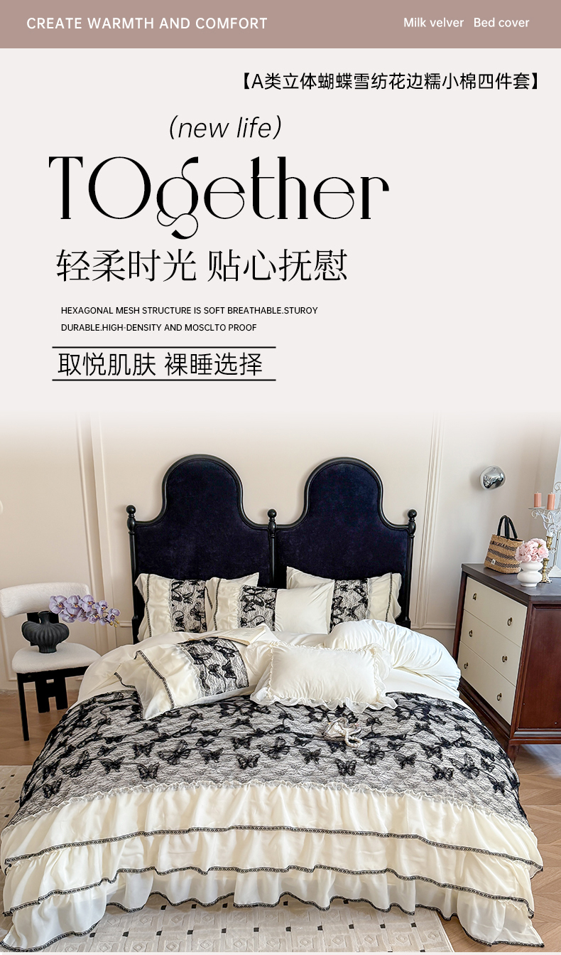 (总)吾欢心 2025新款法式蕾丝款加厚皮草绒四件套,艾莉薇,蝴蝶结,美拉德,梦幻蝶舞,莫奈香颂,索菲亚