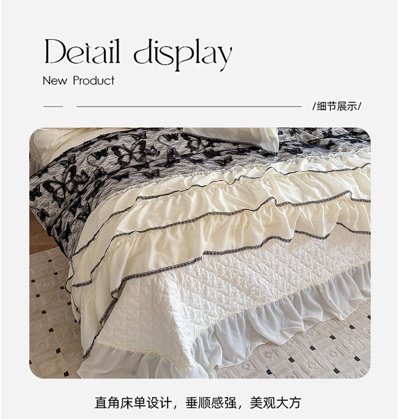 (总)吾欢心 2025新款公主风雪纺边四季通用夹棉床盖,床盖白,床盖粉,床盖黄,床盖咖,床盖绿,床盖抹茶绿,床盖紫