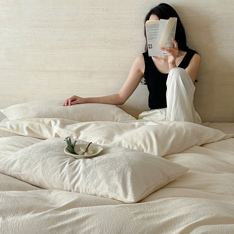 梦享生活家居 2025新款全棉三层肌理提花四件套-素写系列 素写-奶油白