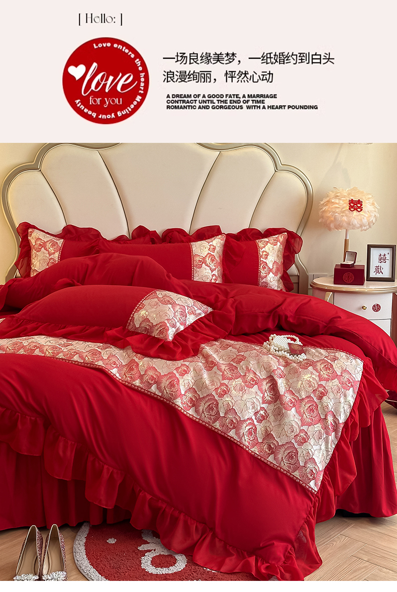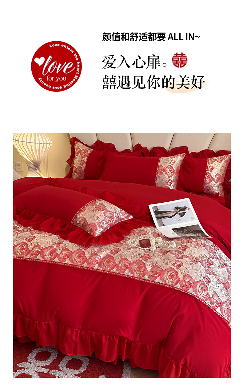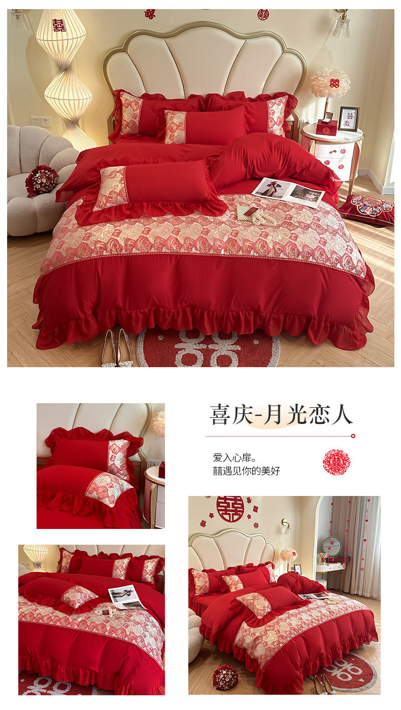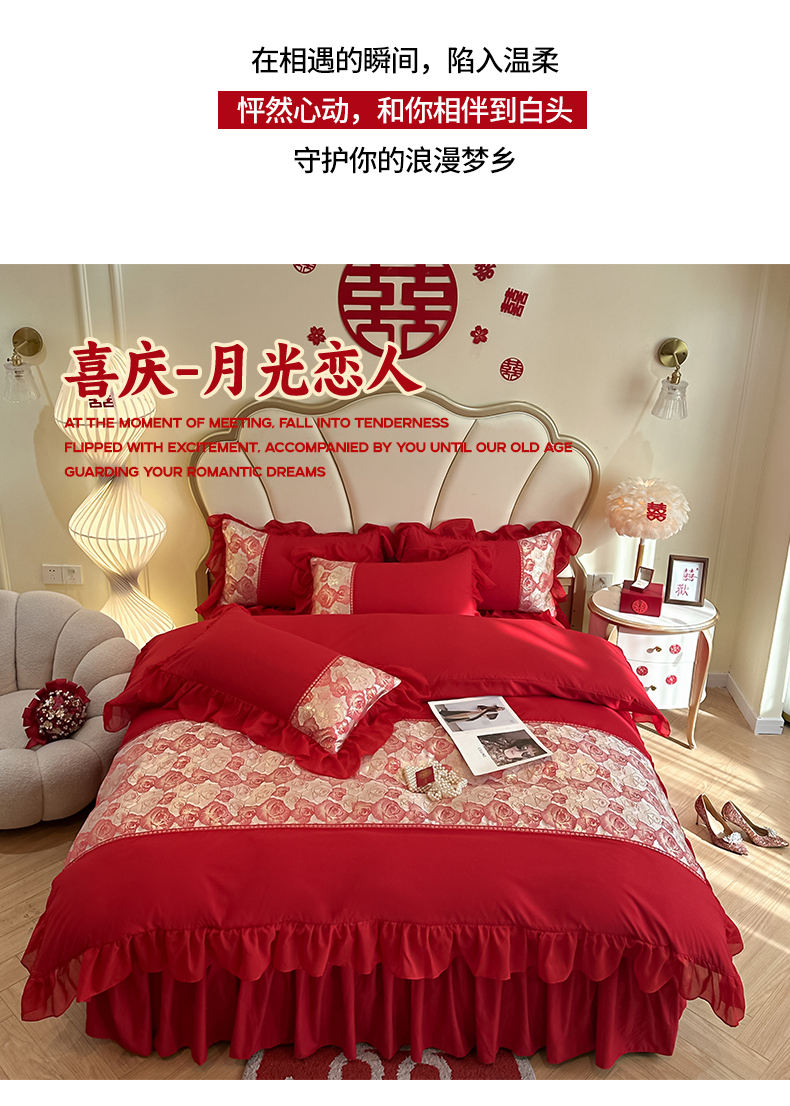 当前位置: 91家纺网 > 商品网购 > 床品套件 > 四件套 > 普通磨毛四件套 > 富盛家纺2025新款婚庆亲肤棉磨毛刺绣四件套 喜庆—月光恋人