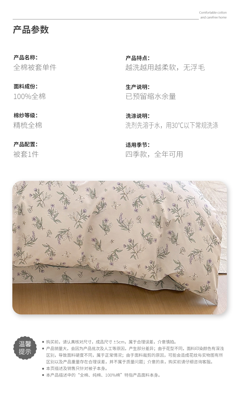 商品名称:元元被芯 2025新款40支13372全棉印花全棉被套 宁静