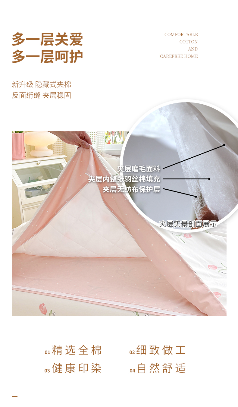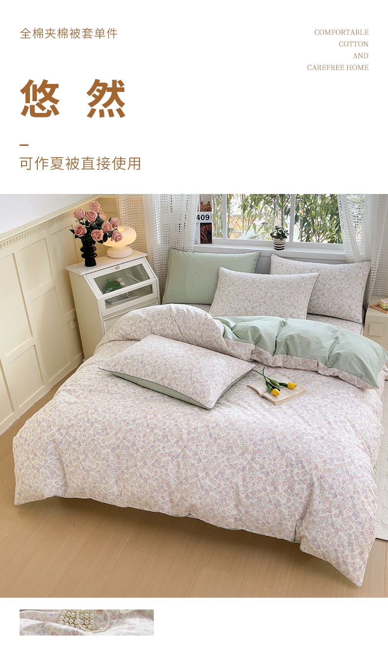 商品名称:元元被芯 2025新款40支13372全棉印花全棉隐藏式夹棉被套 半夏