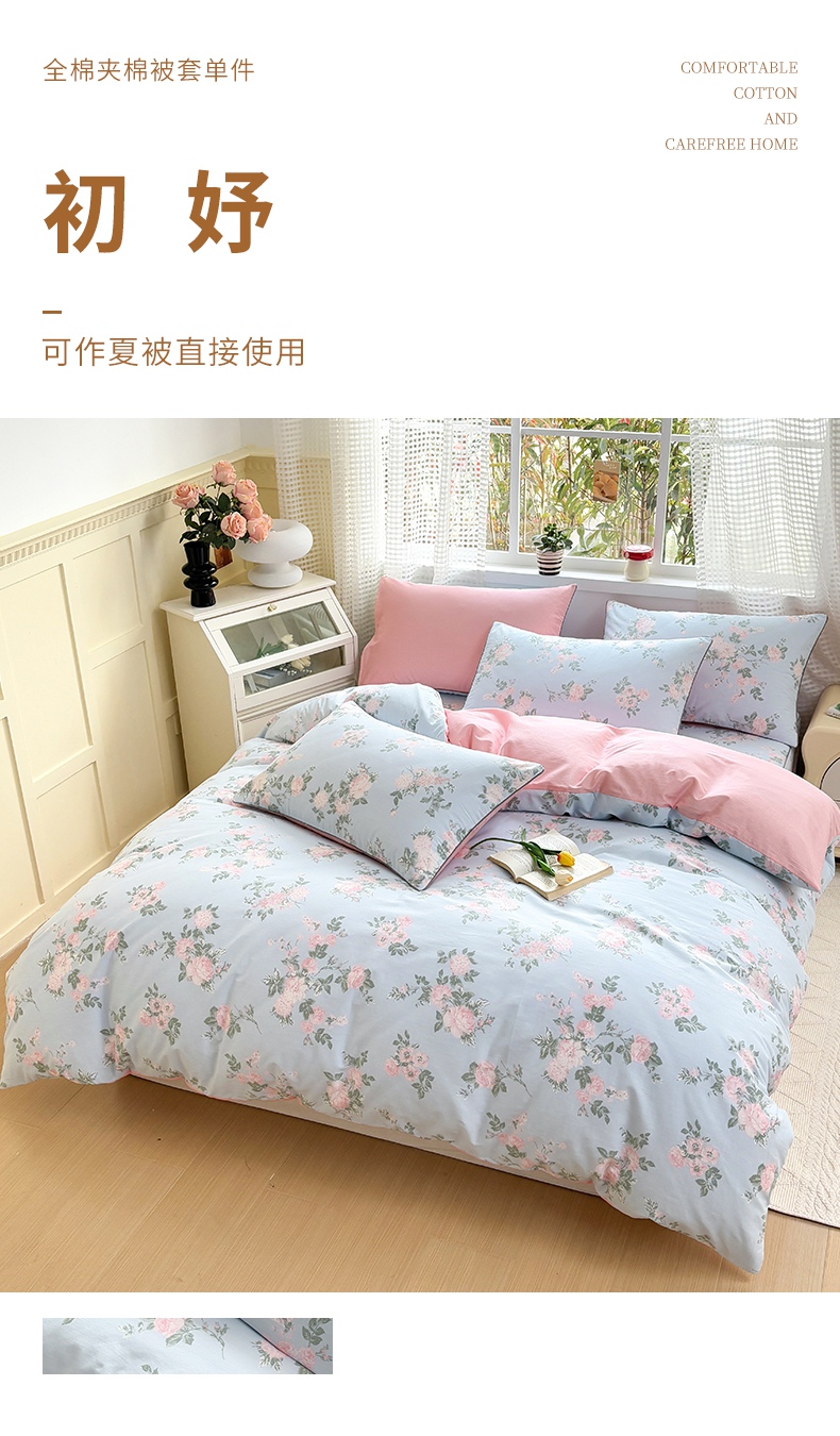 商品名称:元元被芯 2025新款40支13372全棉印花全棉隐藏式夹棉被套 紫萱