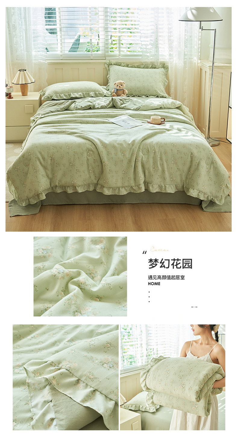 • 91家纺网 家纺一手货源 找家纺 换种生活 2025新款荷叶边款针织单夏被 四件套 梦幻花园