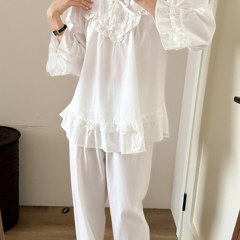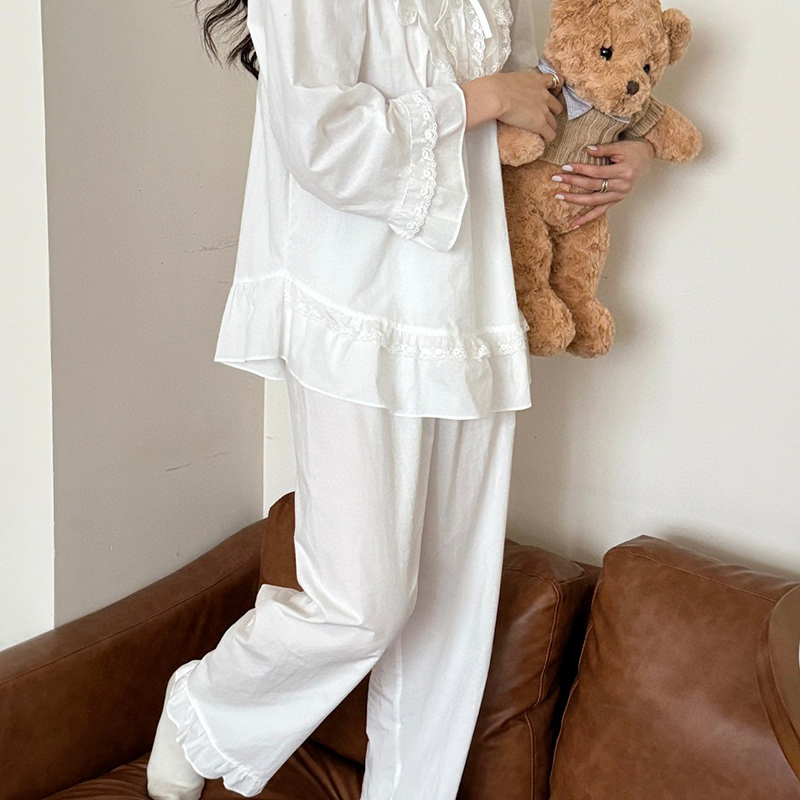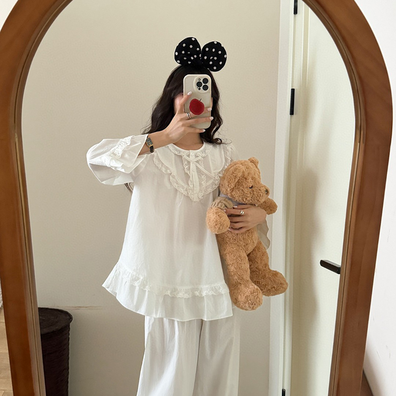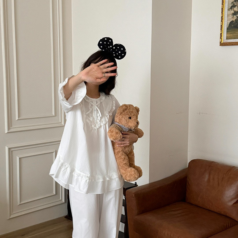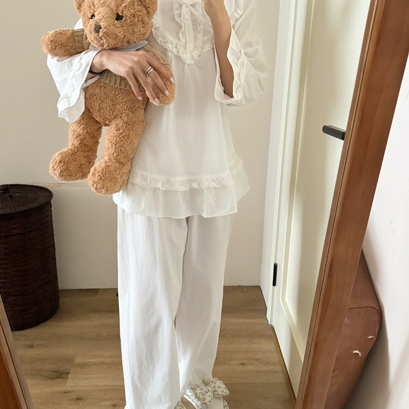 当前位置: 91家纺网 > 商品网购 > 居家日用 > 睡衣/家居服套装 > (总)妍景家居生活馆 2025新款韩系蕾丝蝴蝶结纯白