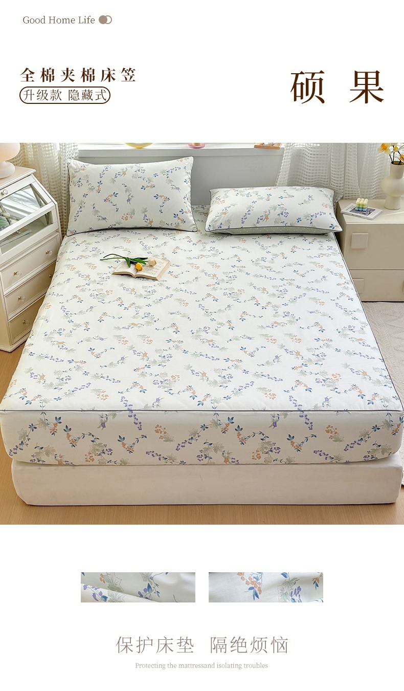 商品名称:元元被芯 2025新款40支13372全棉印花全棉隐藏式夹棉床笠 绿意