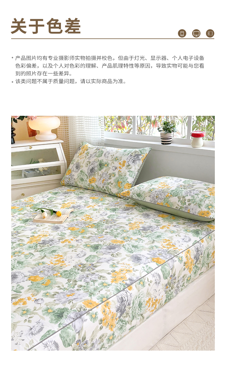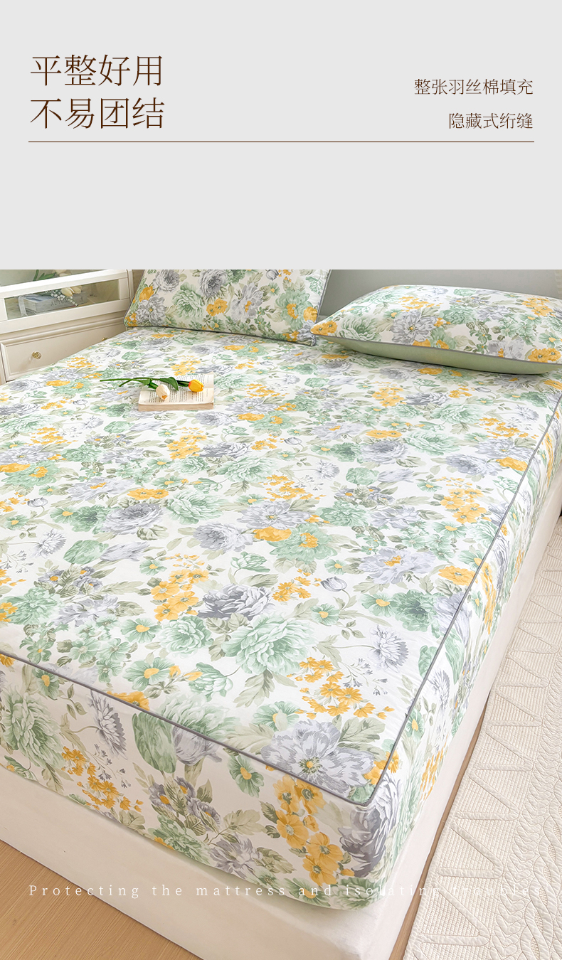 商品名称:元元被芯 2025新款40支13372全棉印花全棉隐藏式夹棉床笠 颂雅