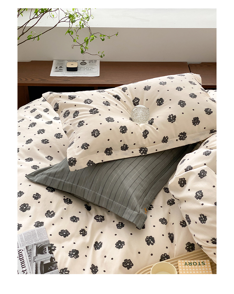 慕希家纺 2025新款全棉13372印花四件套 黑白恋曲
