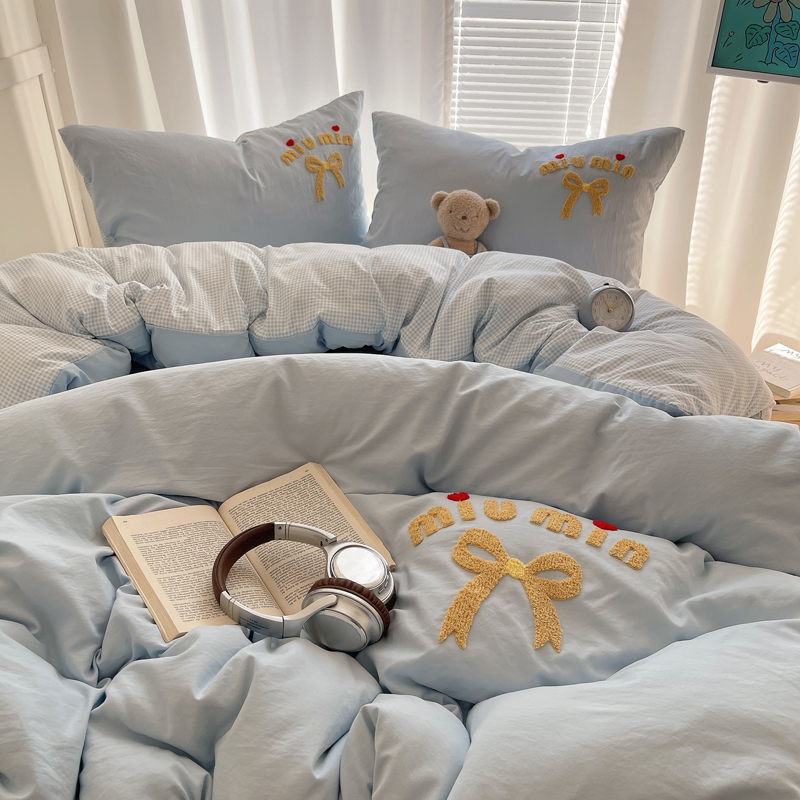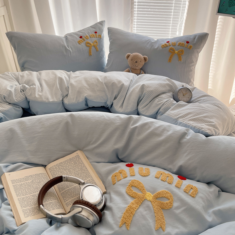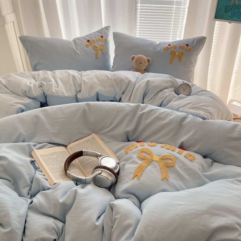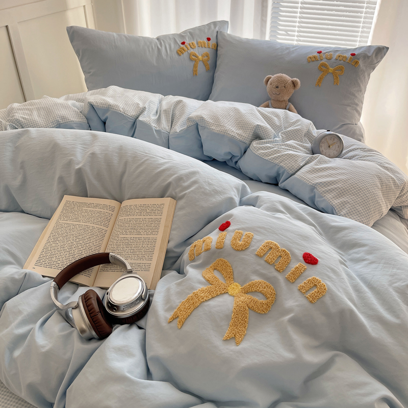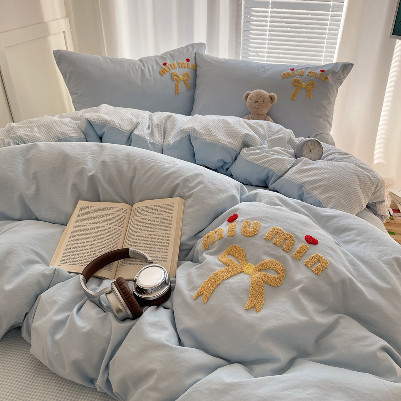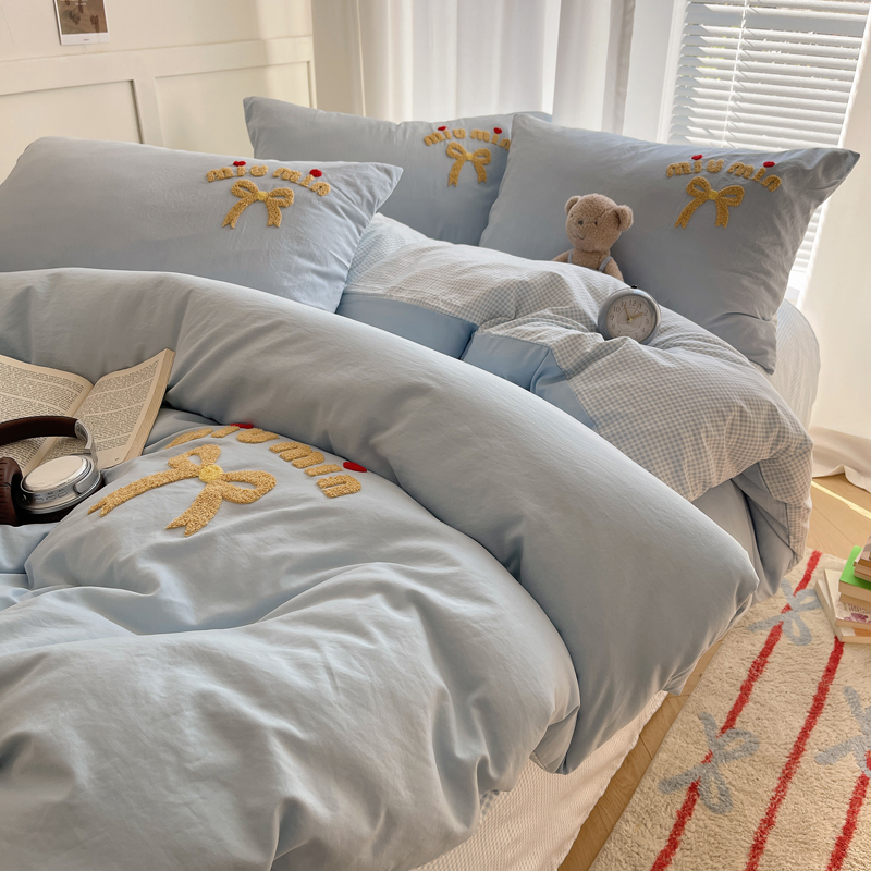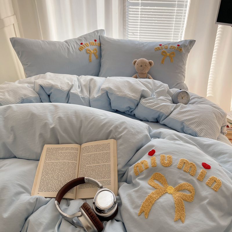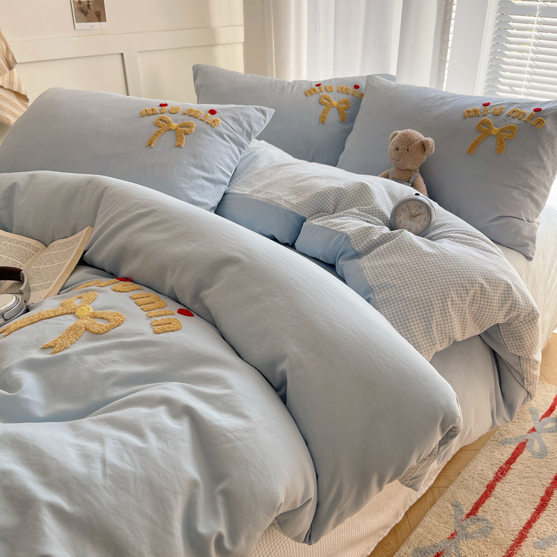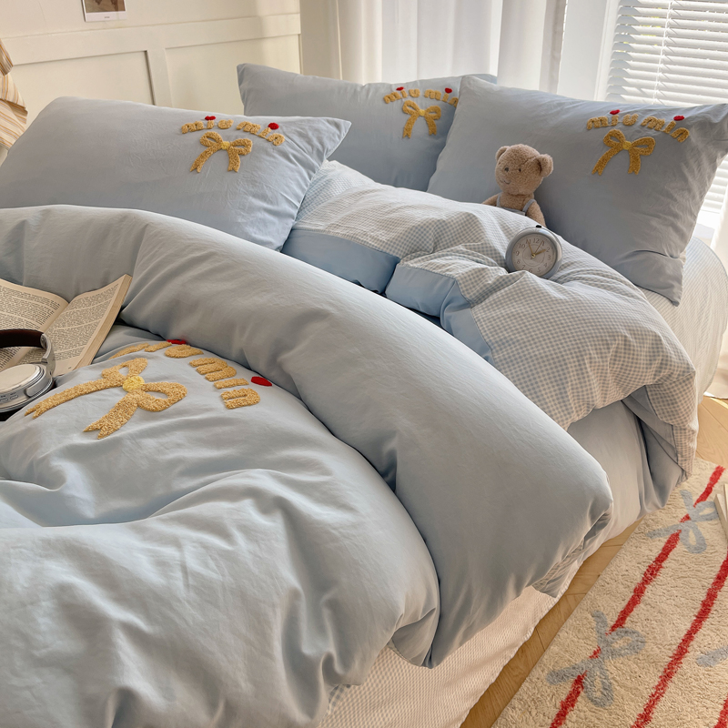 当前位置: 91家纺网 > 商品网购 > 床品套件 > 四件套 > 毛巾绣四件套 > 凯洛奇 2025新款1格子水洗棉卡通毛巾绣四件套 蝴蝶结-天蓝
