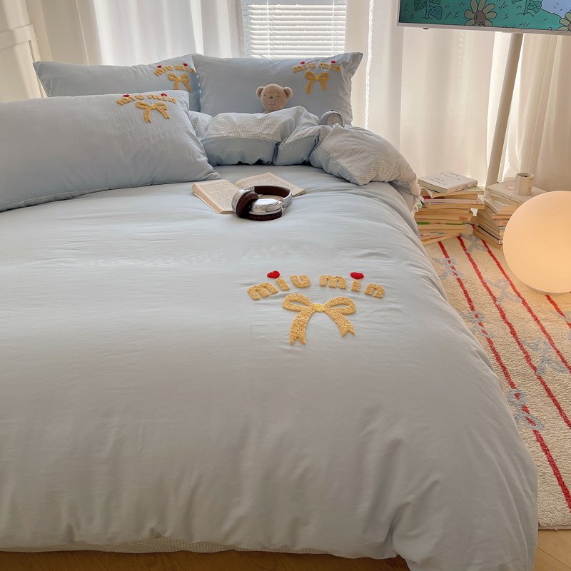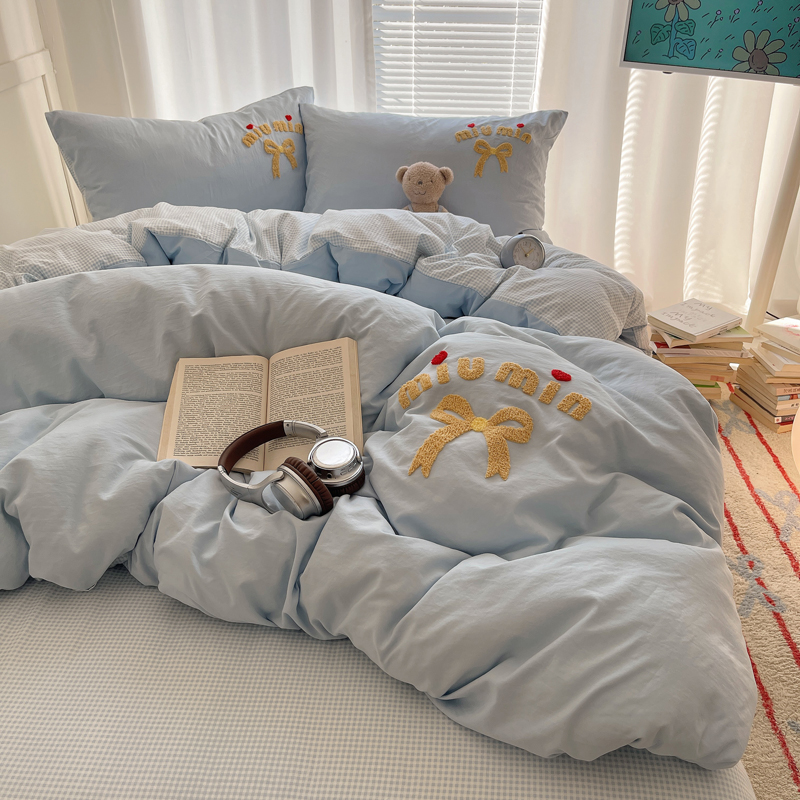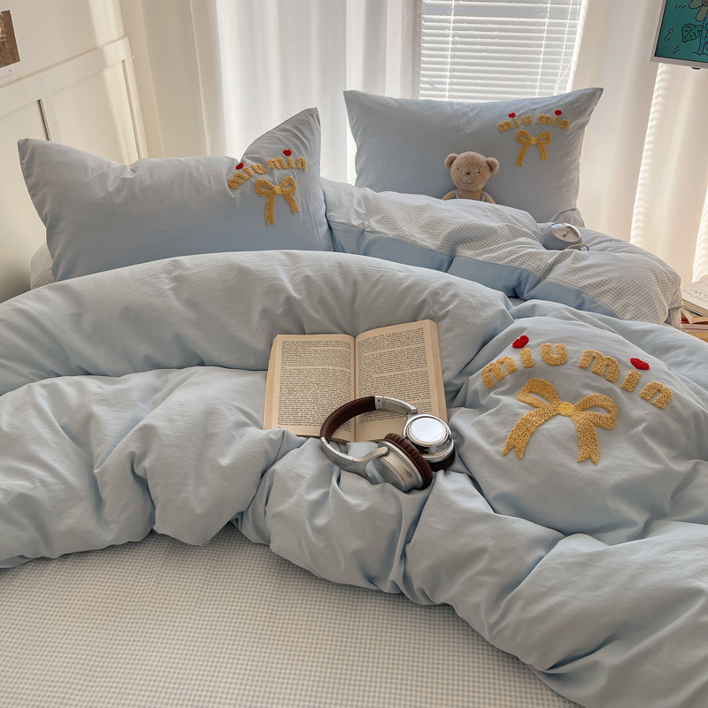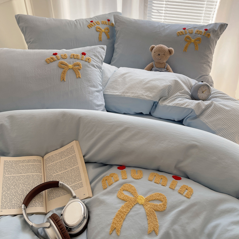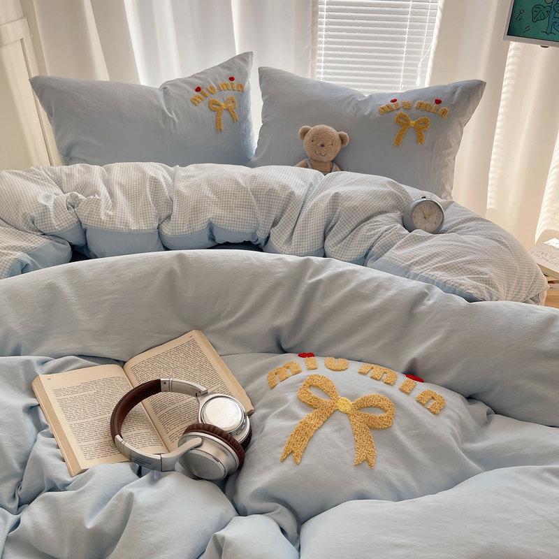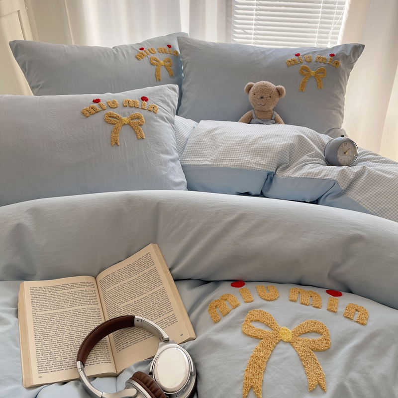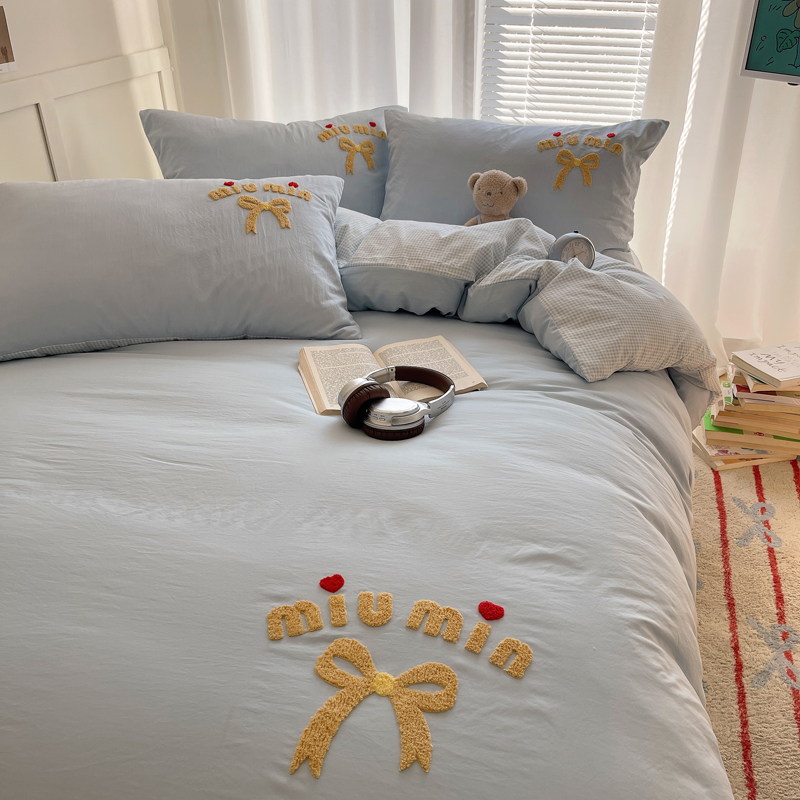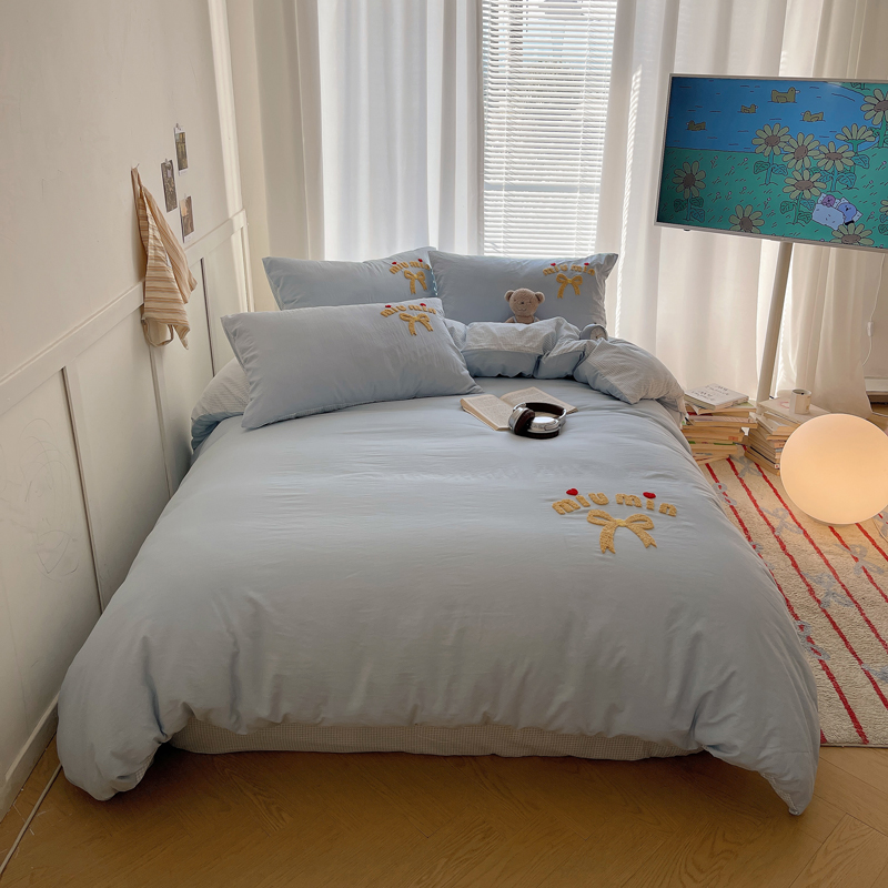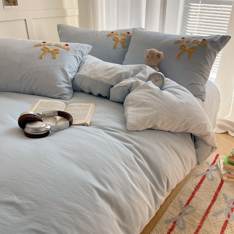 当前位置: 91家纺网 > 商品网购 > 床品套件 > 四件套 > 毛巾绣四件套 > 凯洛奇 2025新款1格子水洗棉卡通毛巾绣四件套 蝴蝶结-天蓝