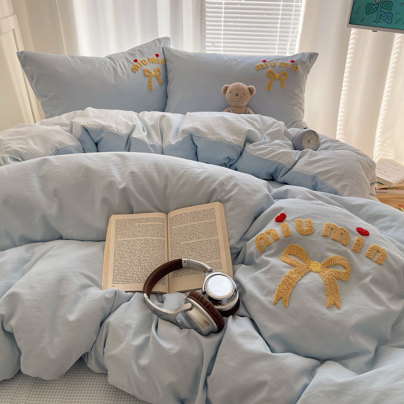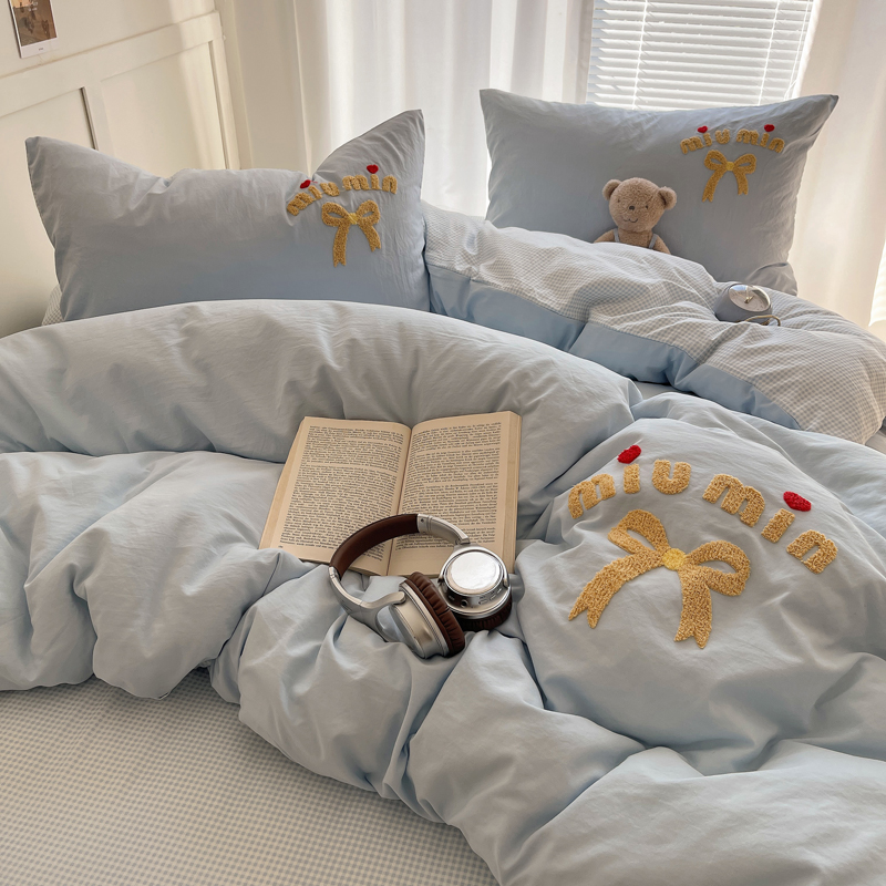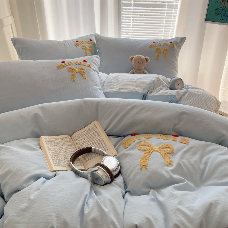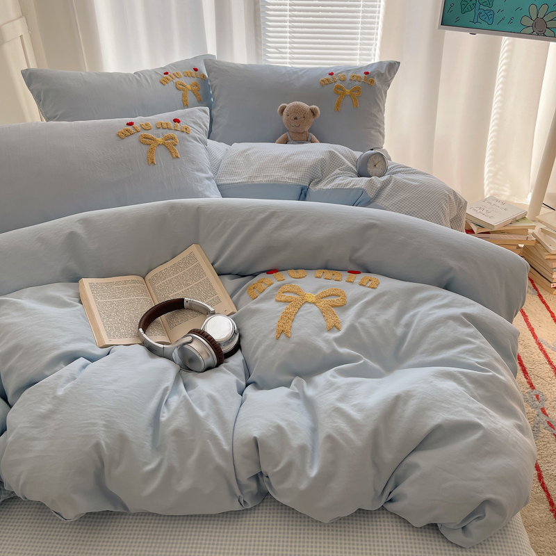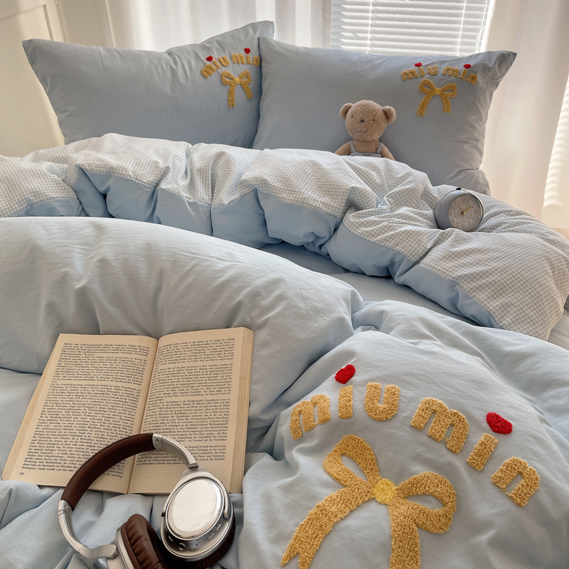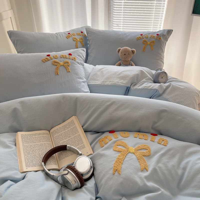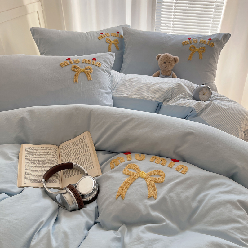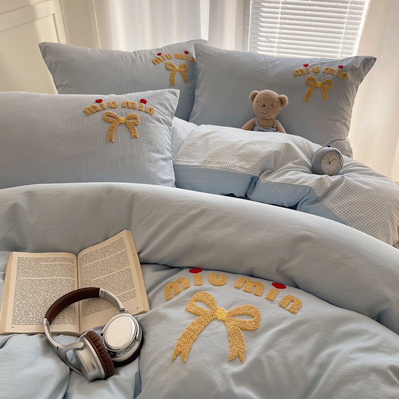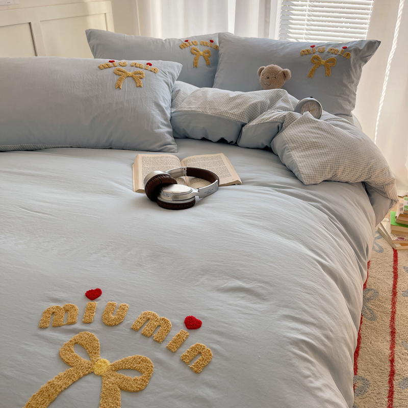 当前位置: 91家纺网 > 商品网购 > 床品套件 > 四件套 > 毛巾绣四件套 > 凯洛奇 2025新款1格子水洗棉卡通毛巾绣四件套 蝴蝶结-天蓝