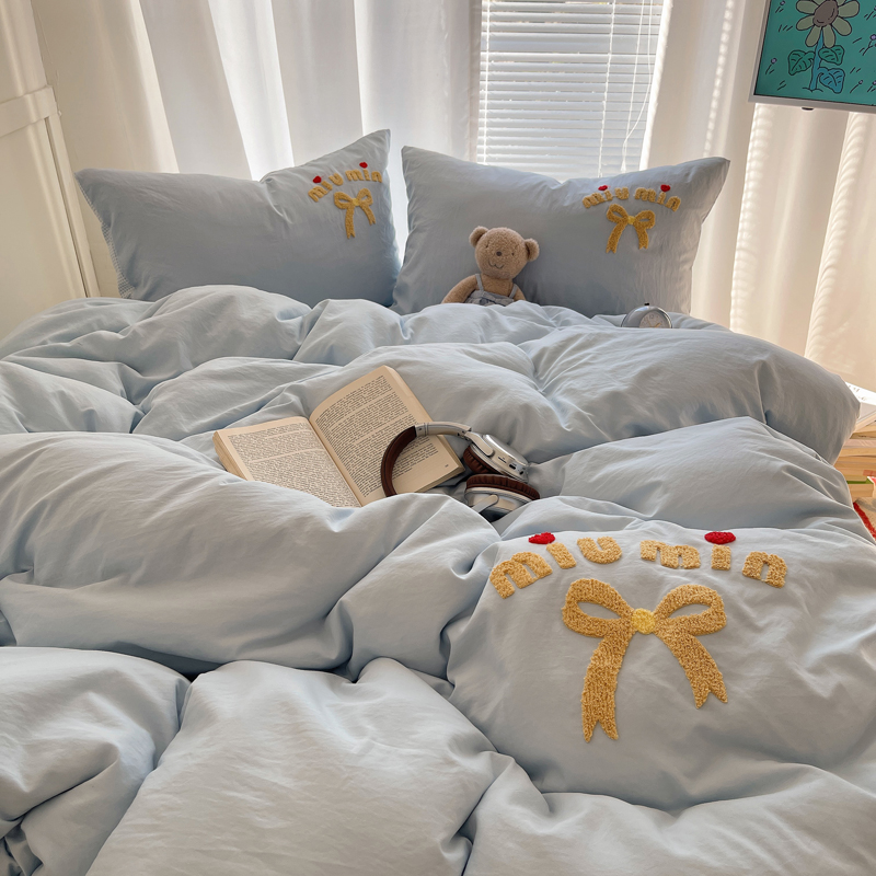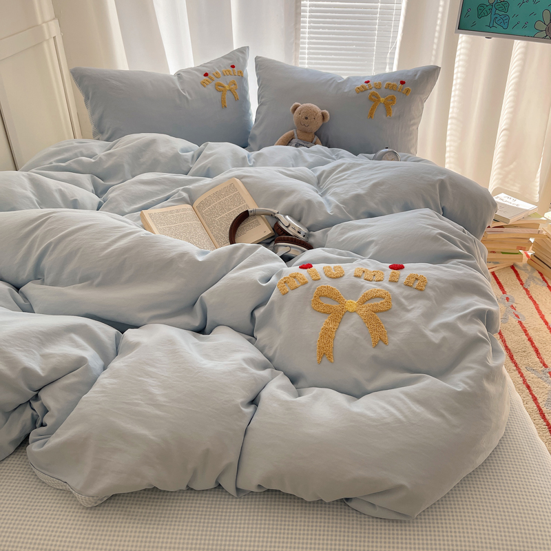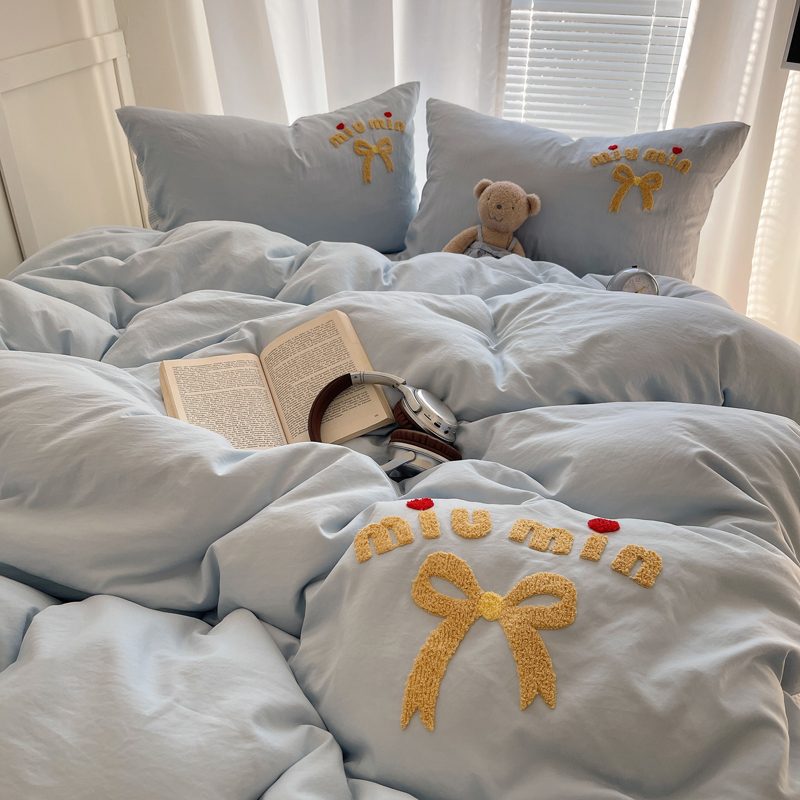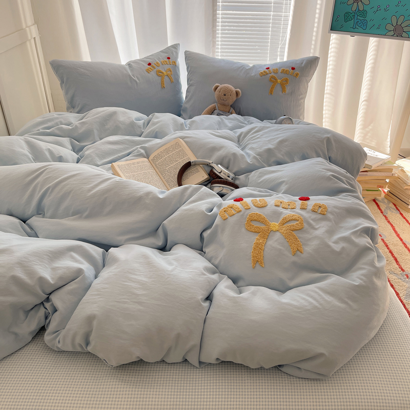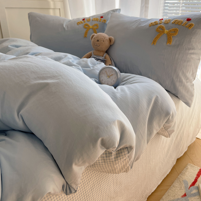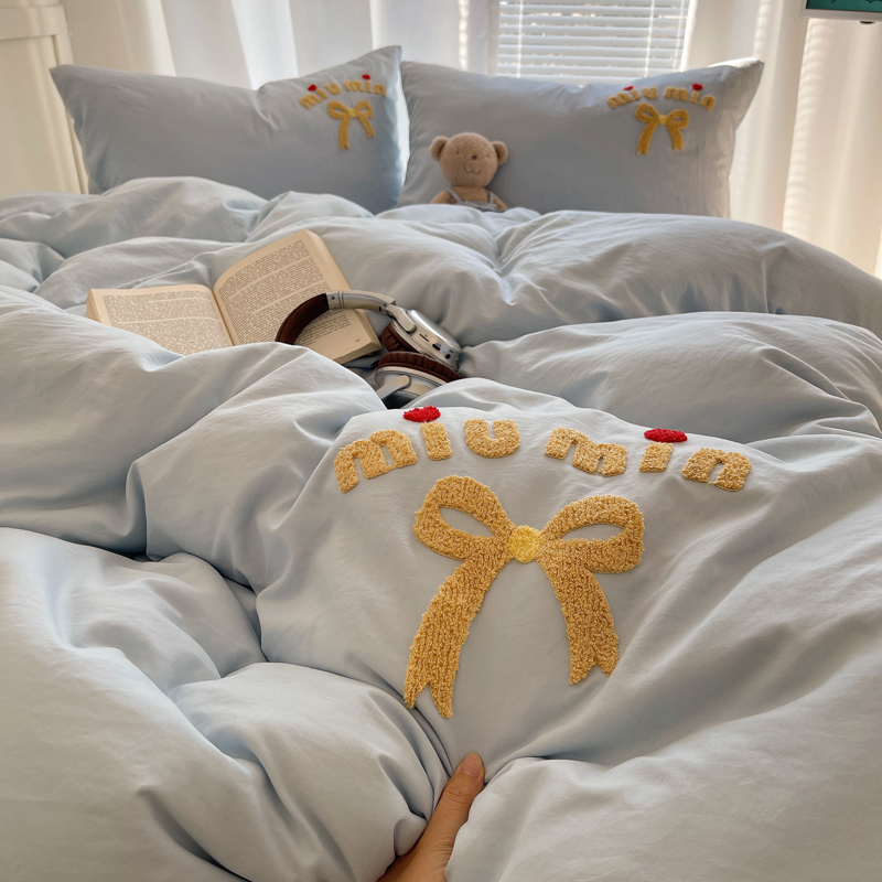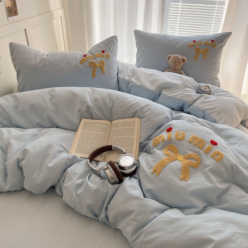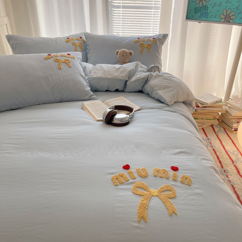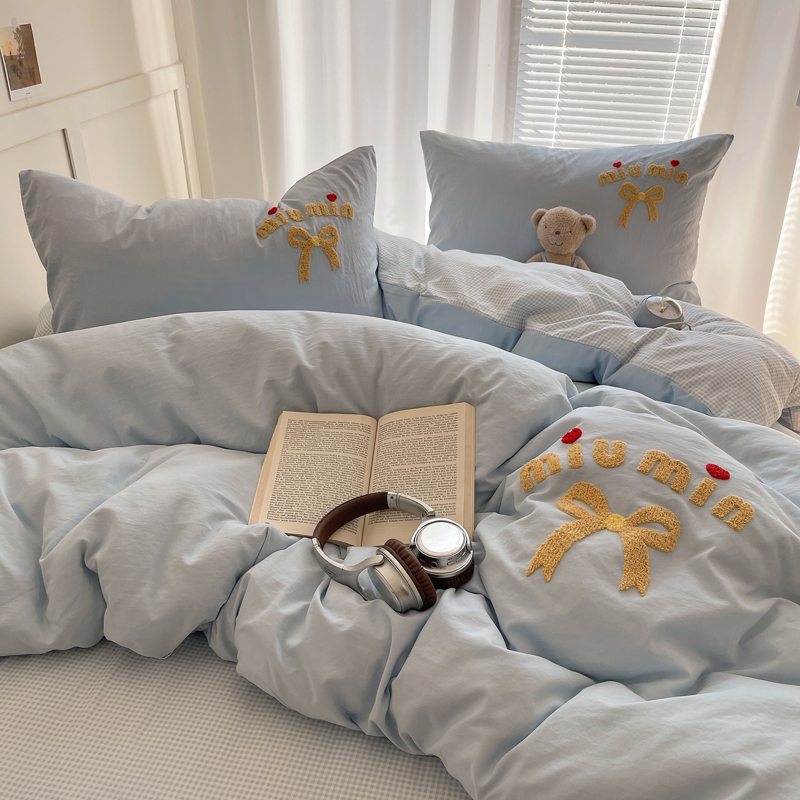当前位置: 91家纺网 > 商品网购 > 床品套件 > 四件套 > 毛巾绣四件套 > 凯洛奇 2025新款1格子水洗棉卡通毛巾绣四件套 蝴蝶结-天蓝