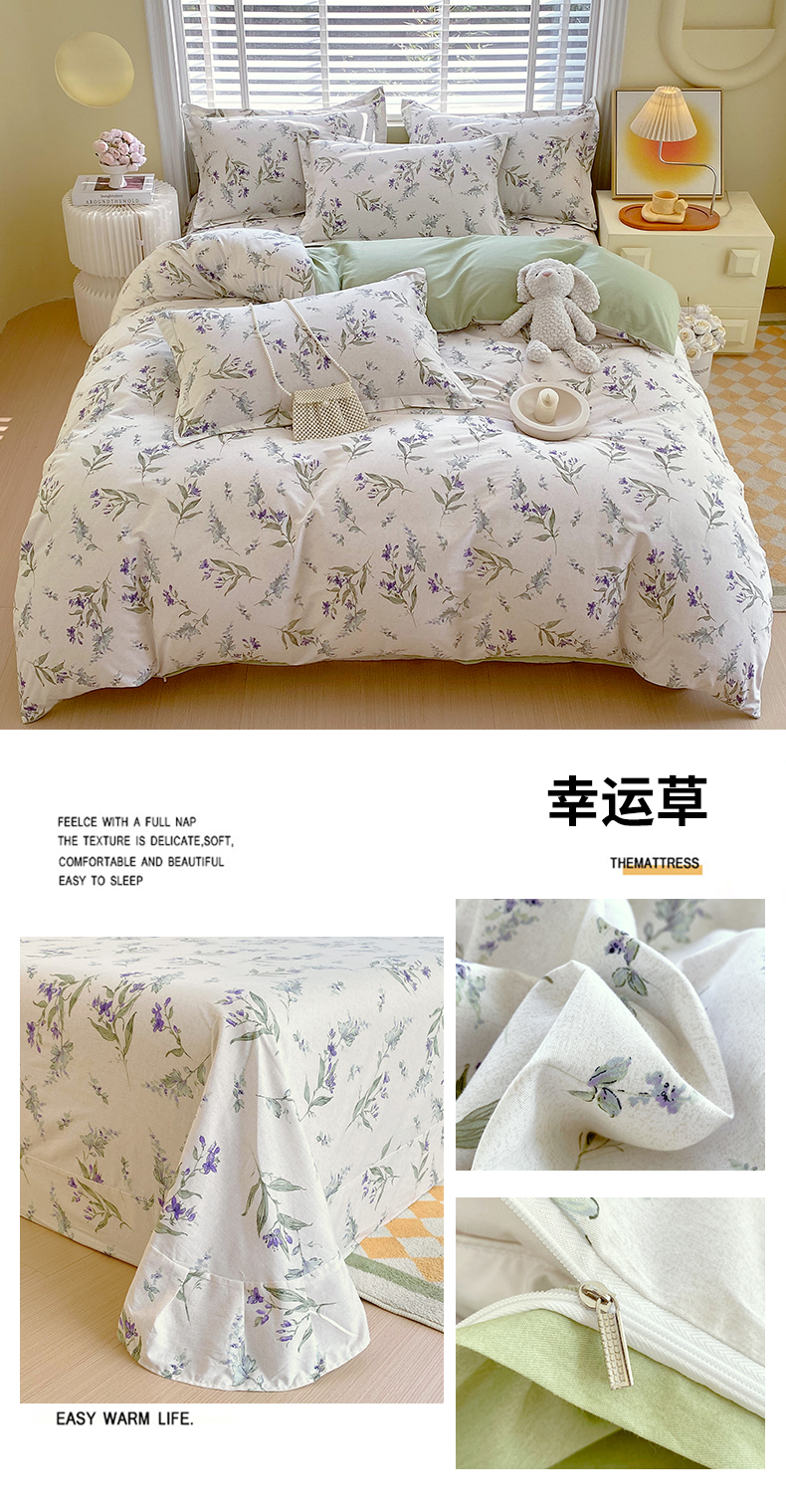 当前位置: 91家纺网 > 商品网购 > 床品套件 > 四件套 > 全棉普通四件套 > 宝齐莱家纺 2025新款13372全棉印花四件套 幸运草