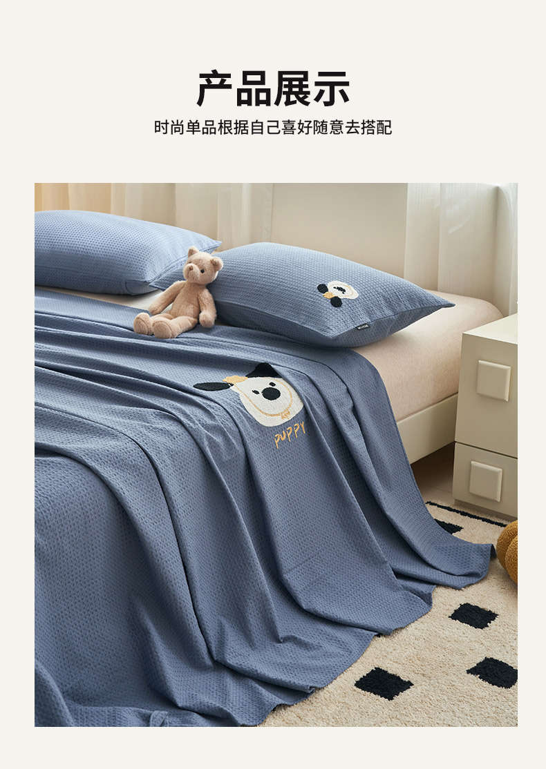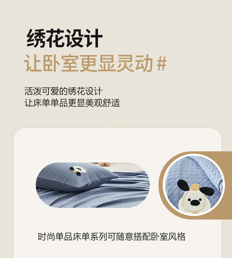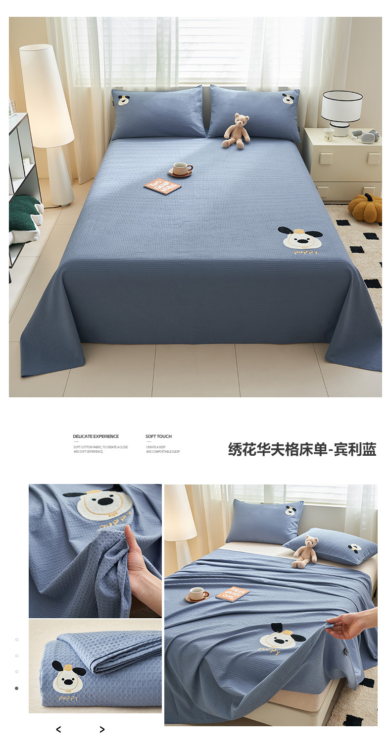 当前位置: 91家纺网 > 商品网购 > 床上用品 > 床单 > 寐绸家纺 2025新款纯棉华夫格毛巾绣单床单 绣花华夫格床单-宾利蓝