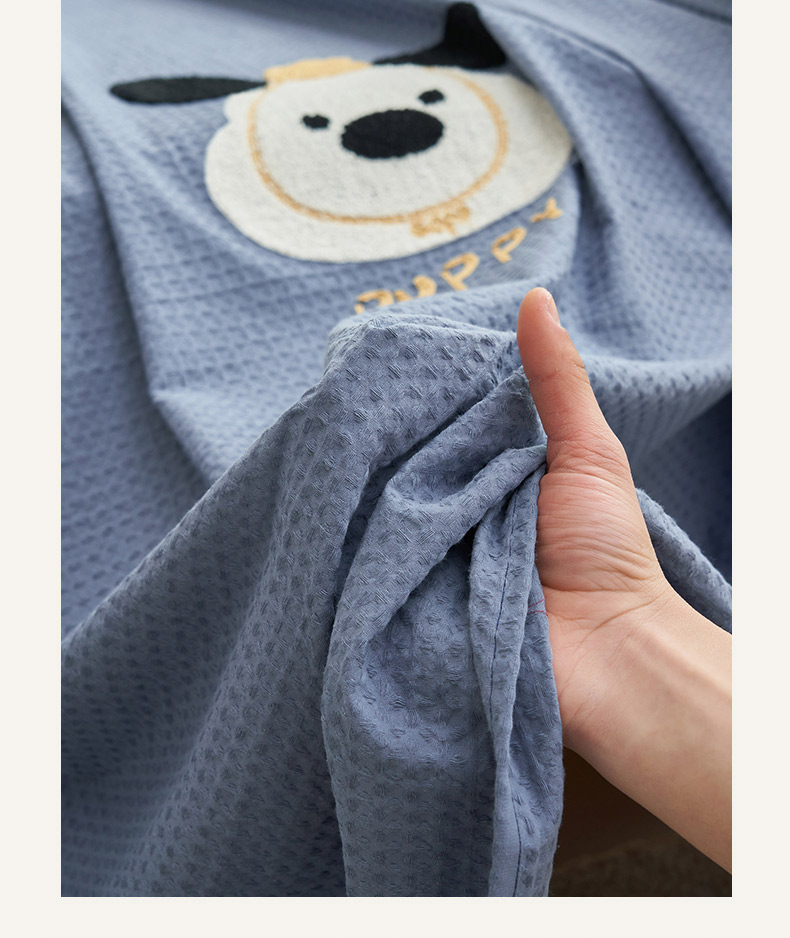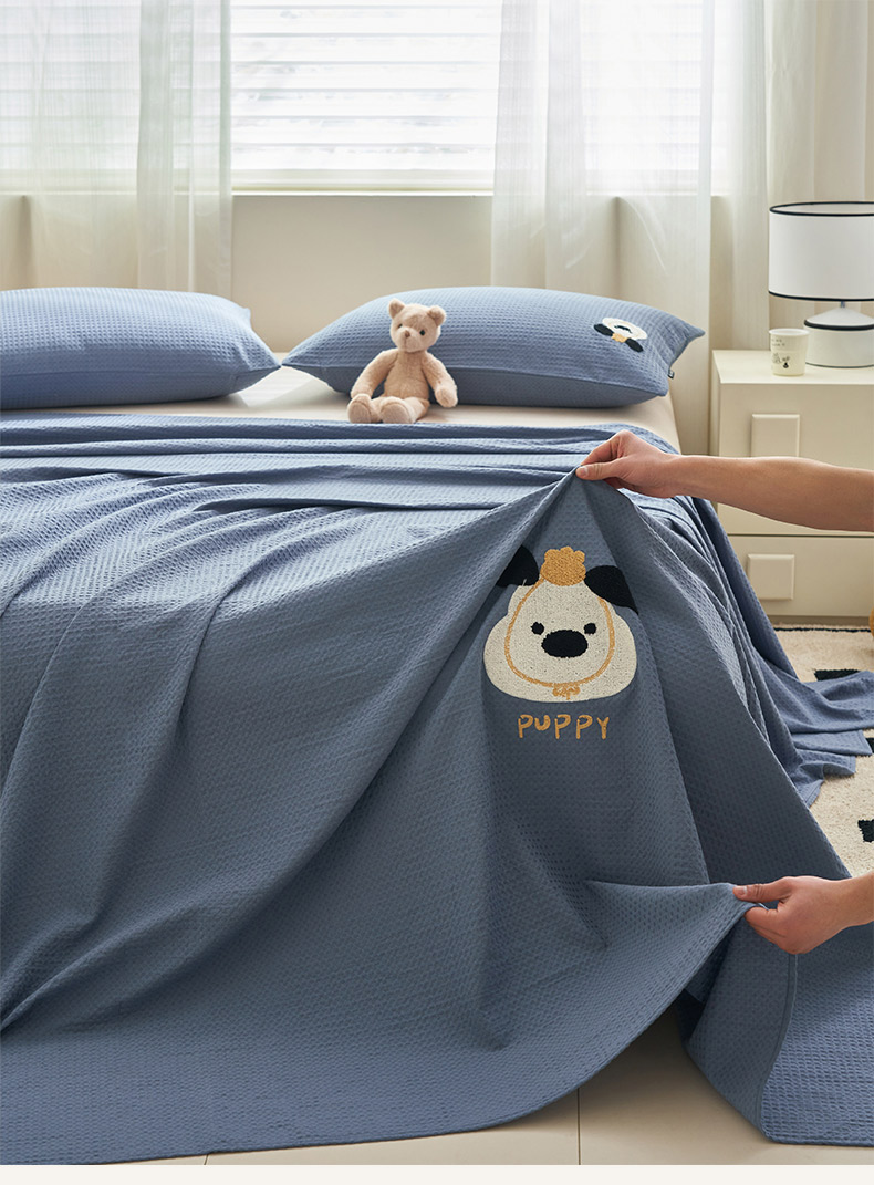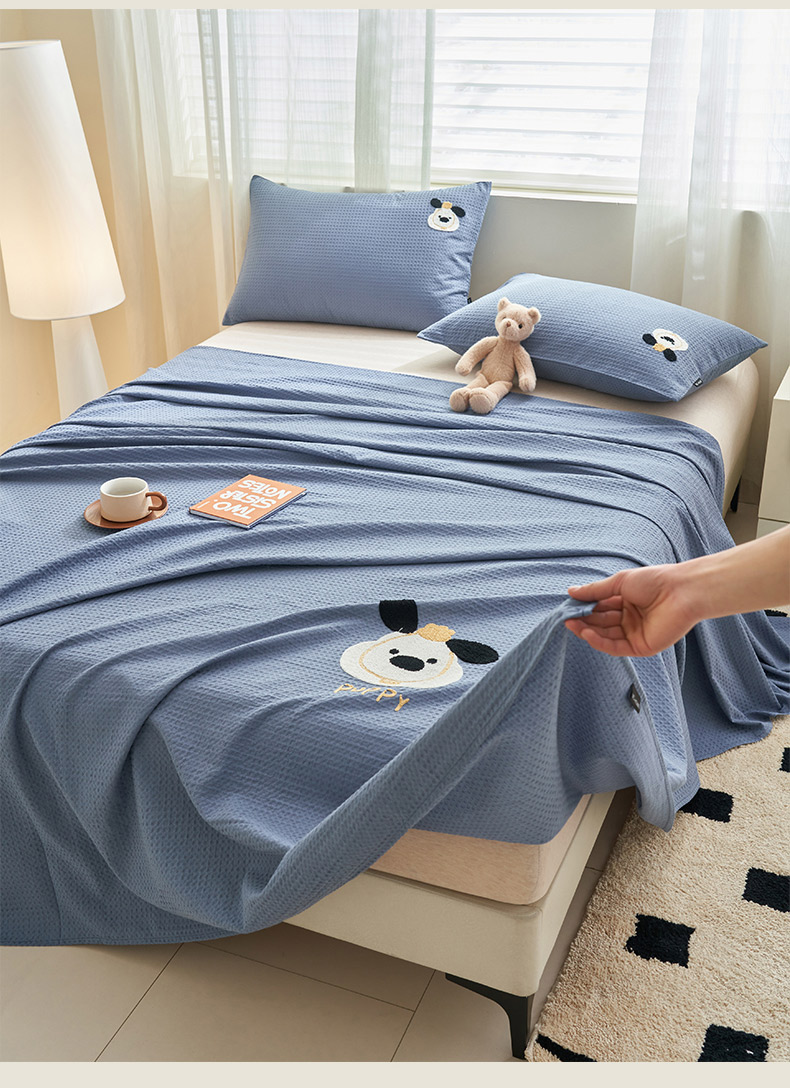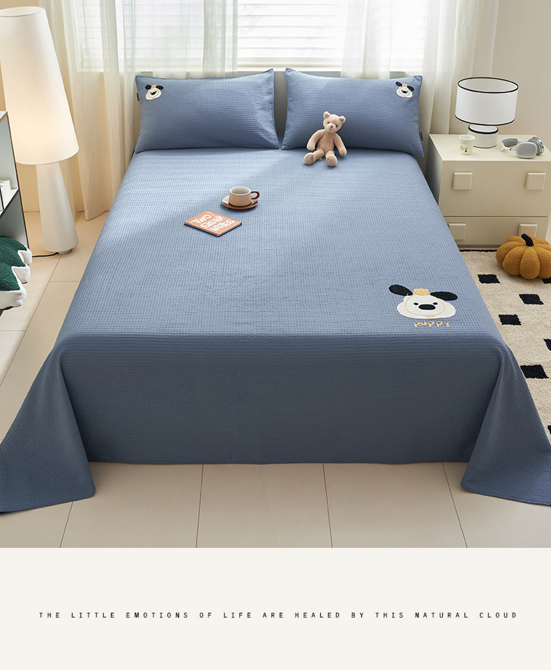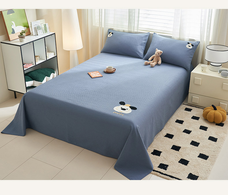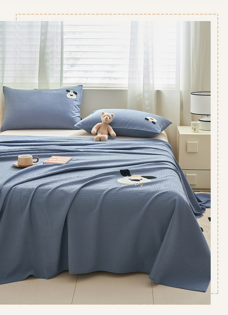 寐绸家纺 2025新款纯棉华夫格毛巾绣单床单 绣花华夫格床单-宾利蓝