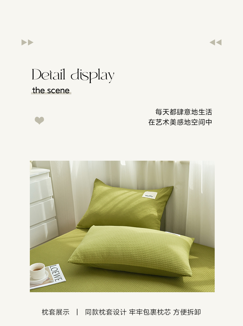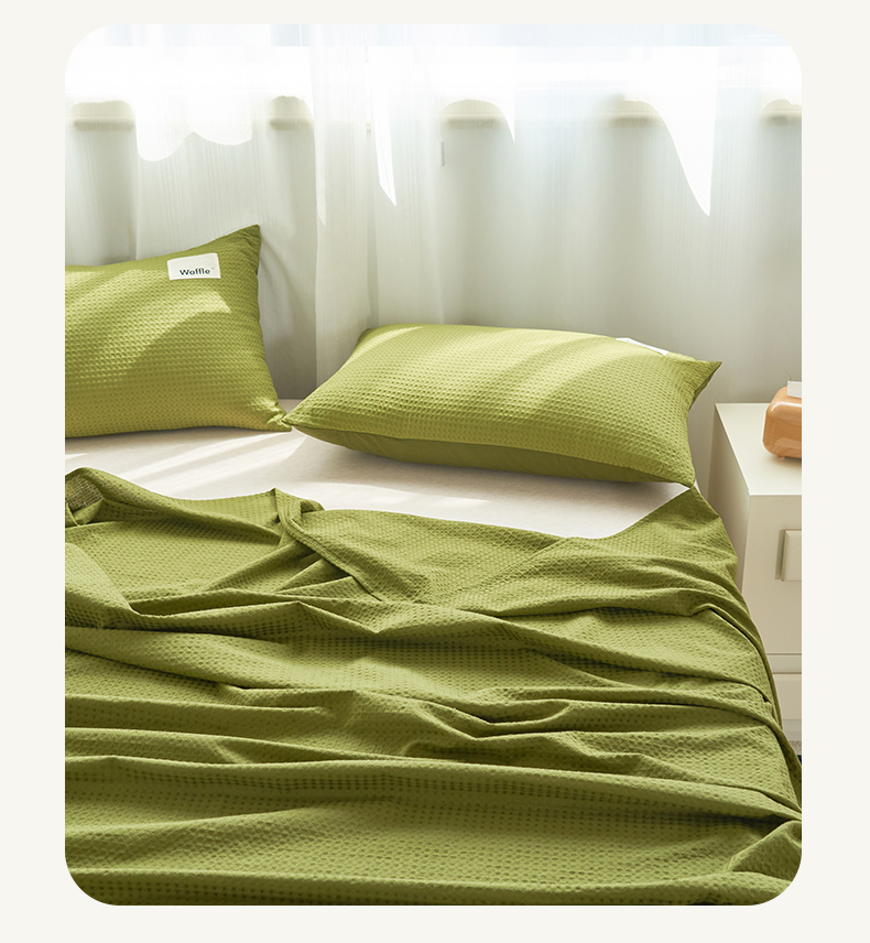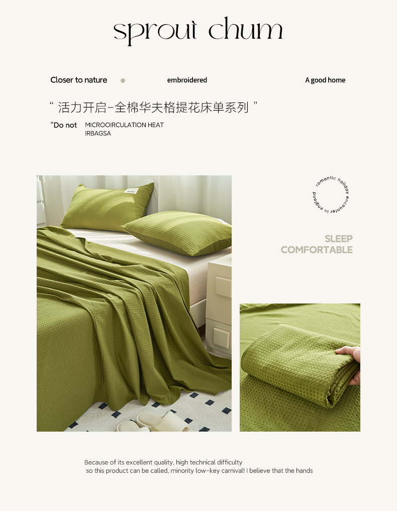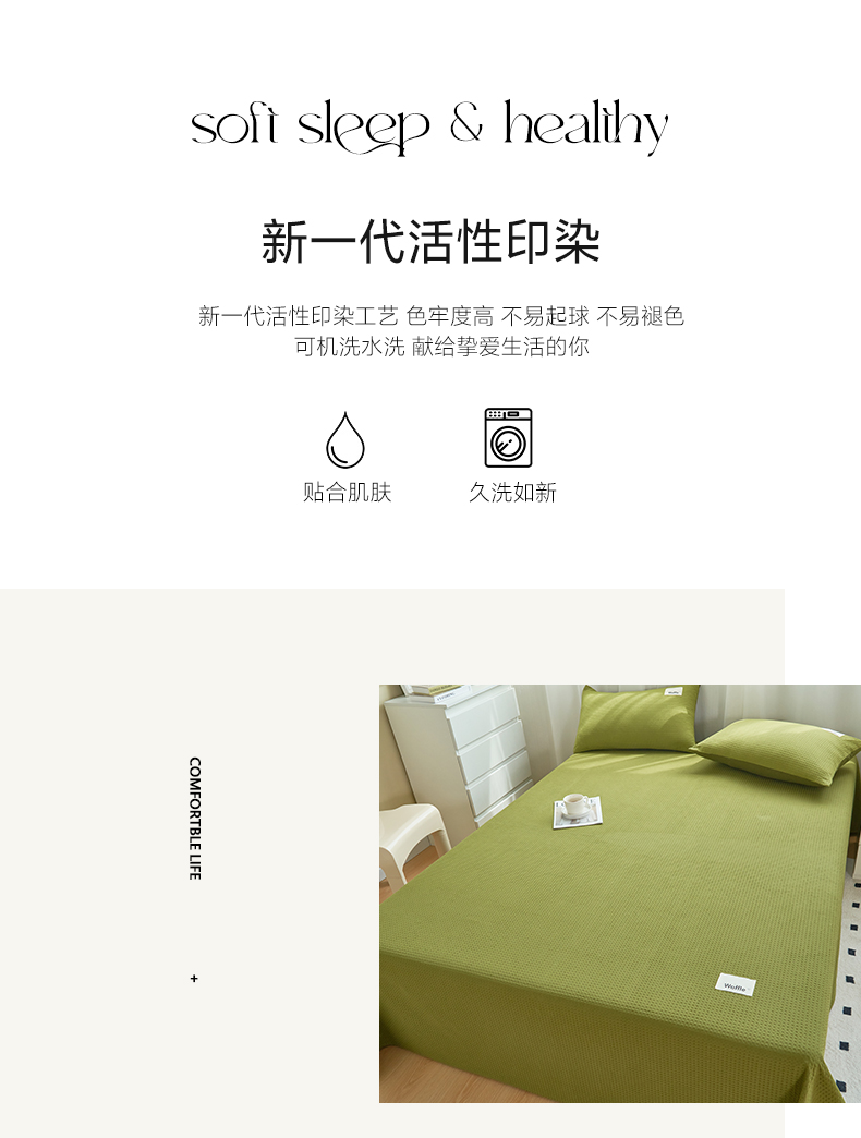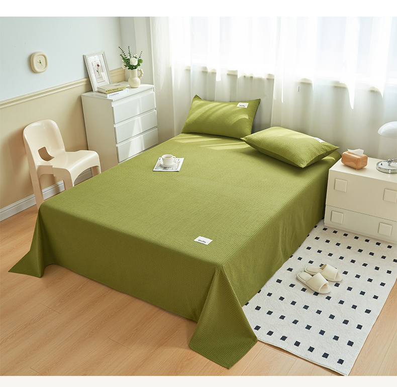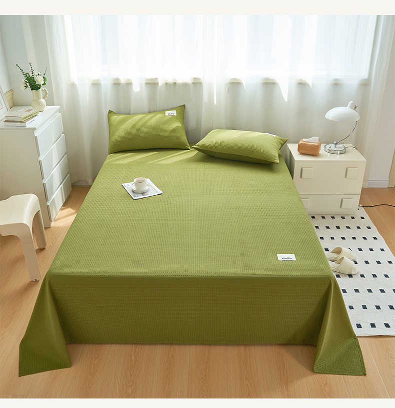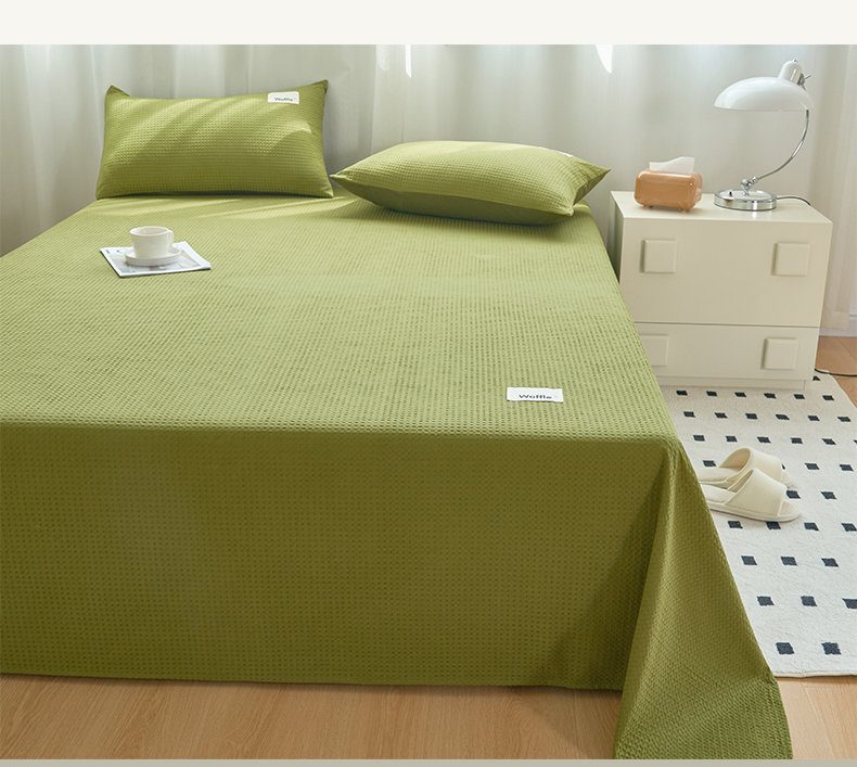 寐绸家纺 2025新款纯棉华夫格床单 纯棉华夫格床单-橄榄绿