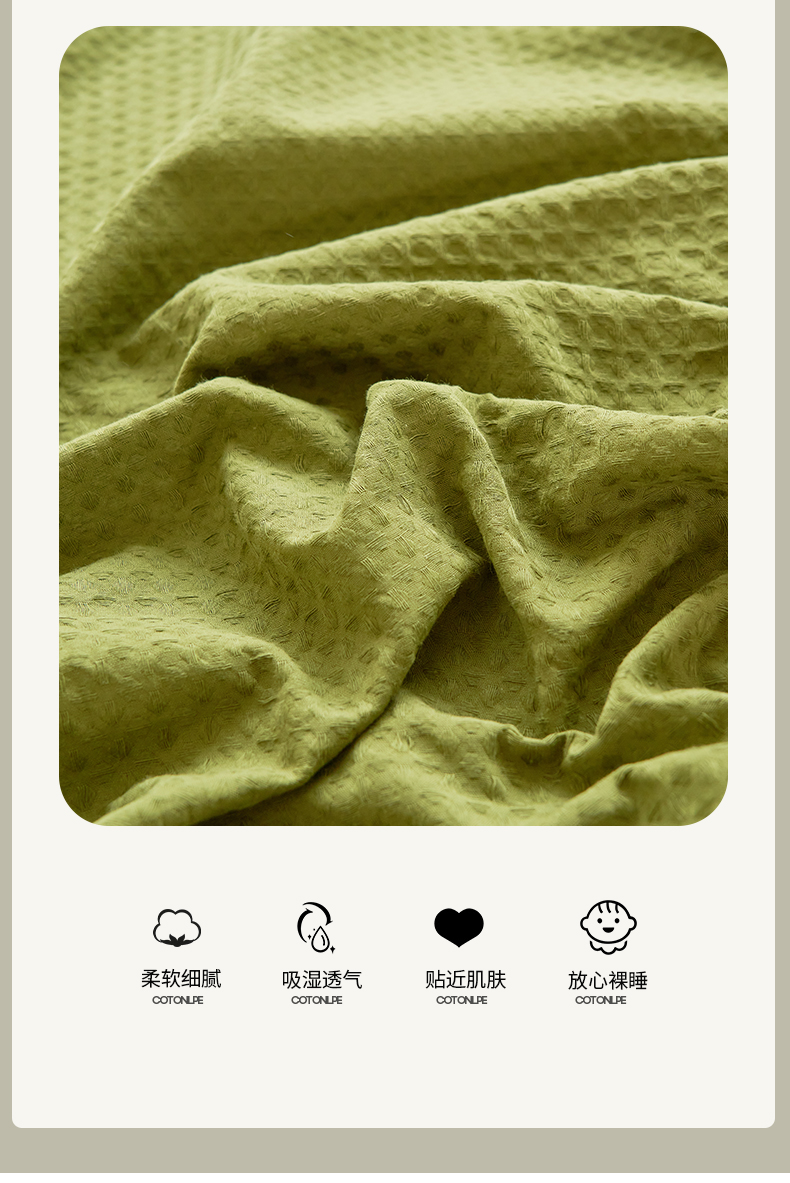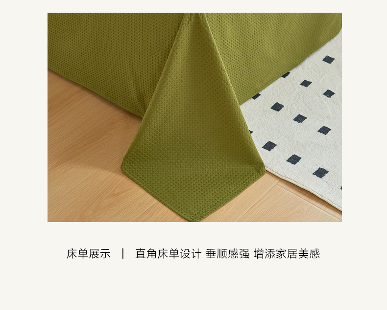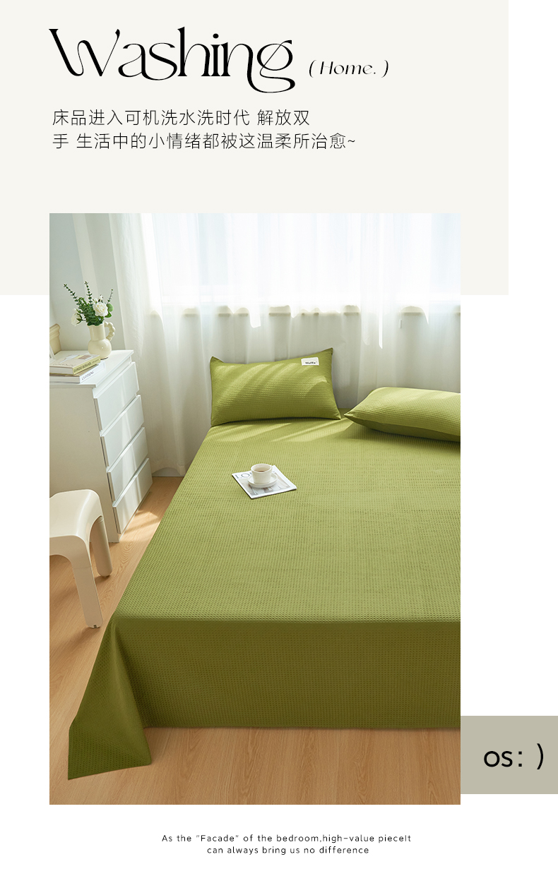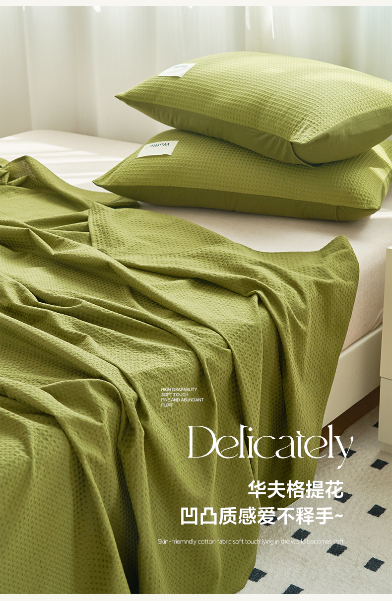 • 91家纺网 家纺一手货源 找家纺 寐绸家纺 2025新款纯棉华夫格床单 纯棉华夫格床单-橄榄绿