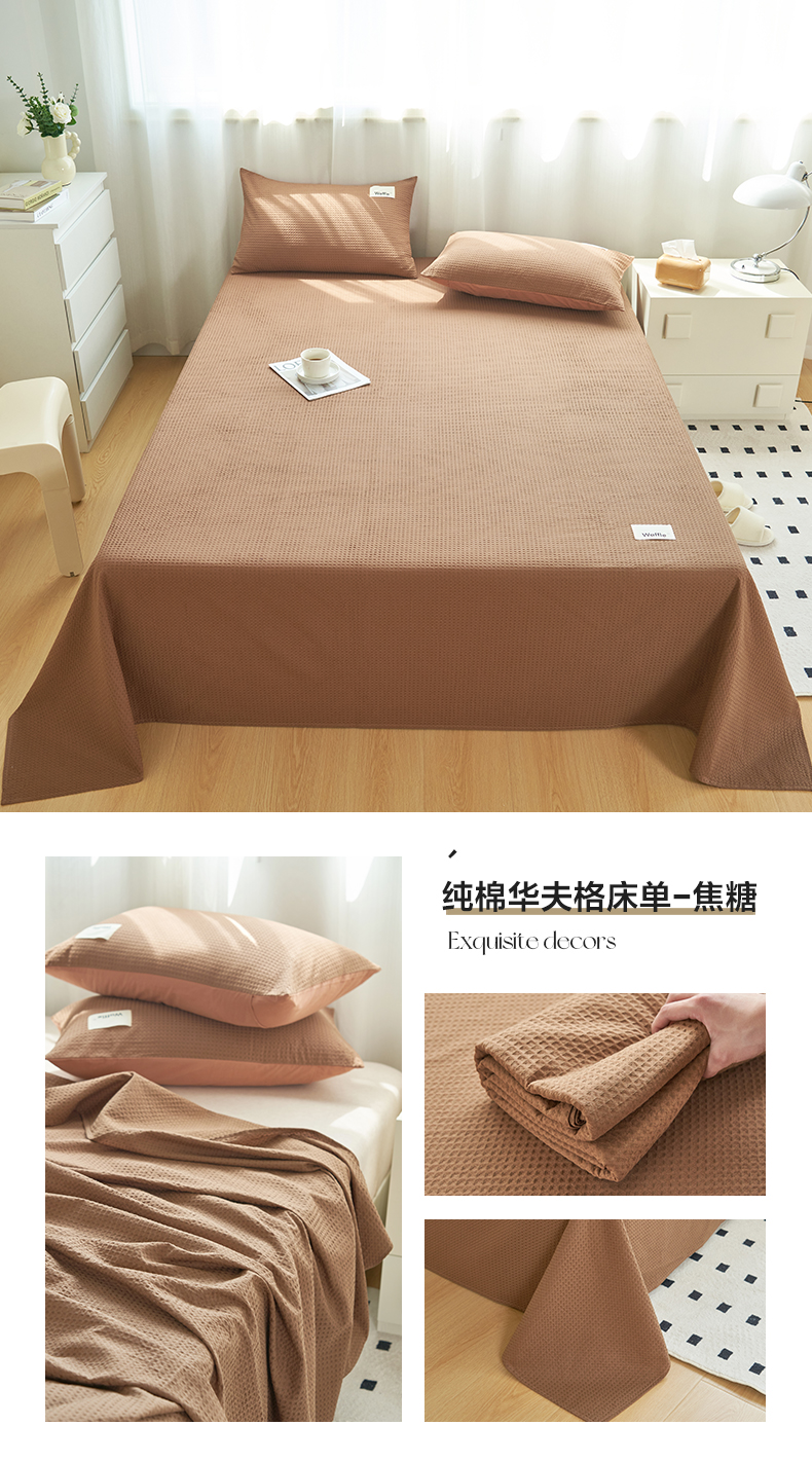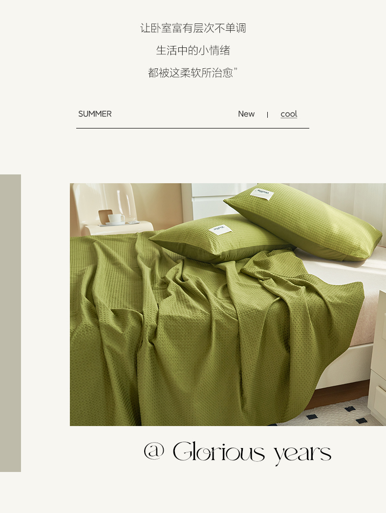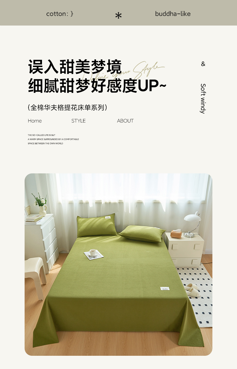 • 91家纺网 家纺一手货源 找家纺 寐绸家纺 2025新款纯棉华夫格床单 纯棉华夫格床单-橄榄绿