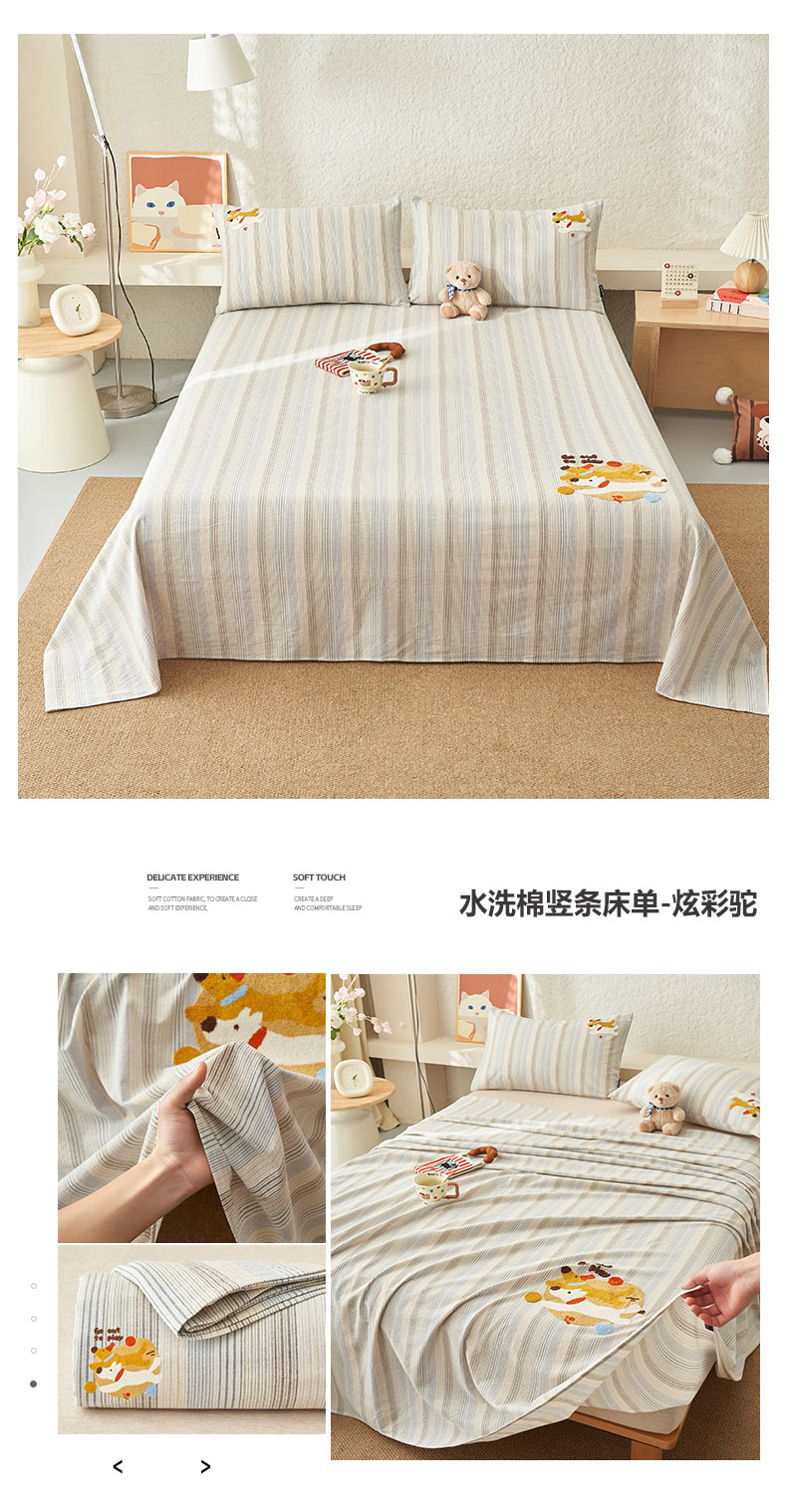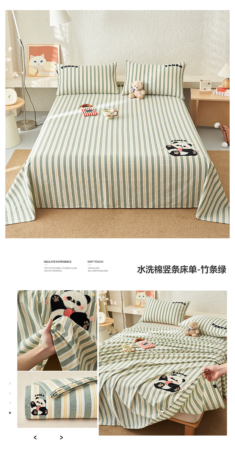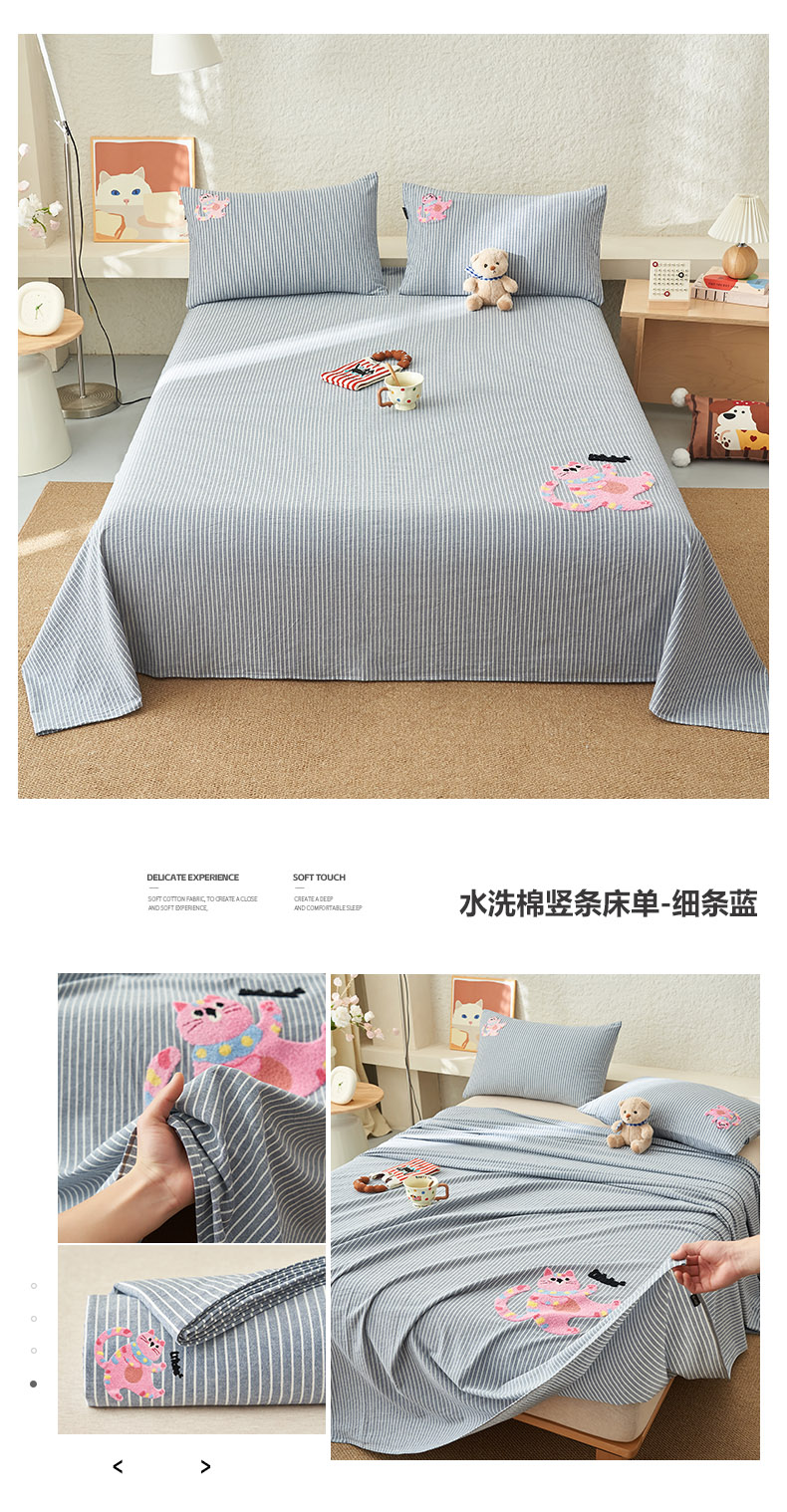 寐绸家纺 2025新款纯棉色织水洗棉竖条单床单 水洗棉竖条床单-粗条浅蓝