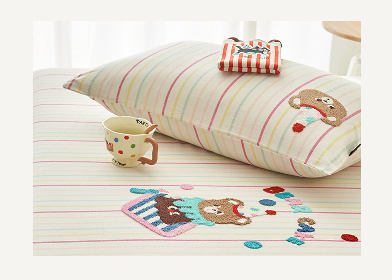 寐绸家纺 2025新款纯棉色织水洗棉竖条单床笠 水洗棉竖条床笠-彩条粉