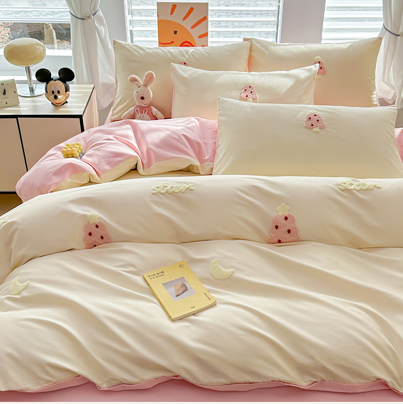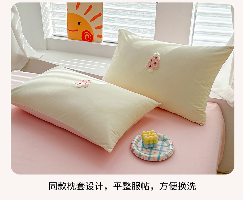 (总)其奥 2025新款小提花韩版公主风小清新轻奢水洗棉四件套三件套,粉豆沙,浪漫紫,美拉德棕,香草绿,优雅灰,玉色,蓝色
