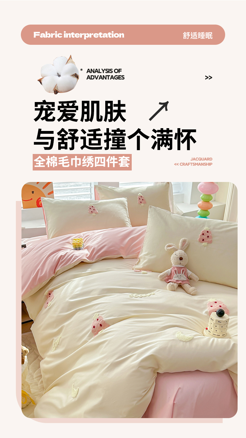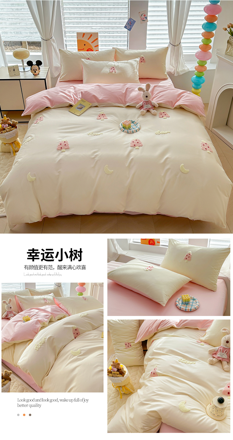 商品名称:其奥家纺 2025新款毛巾绣全棉四件套水洗棉纯棉 幸运小树