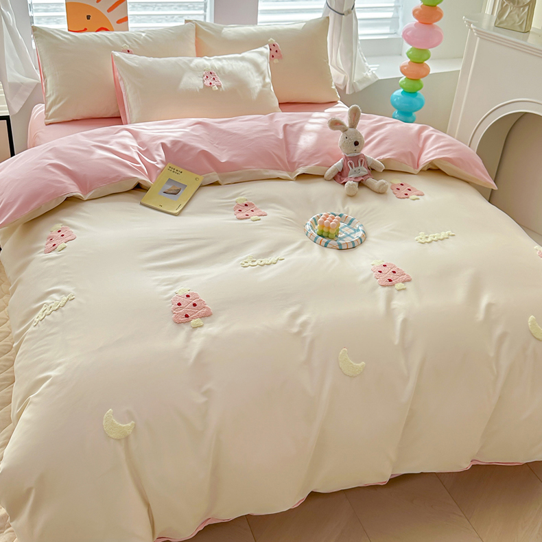 其奥家纺 2025新款毛巾绣全棉四件套水洗棉纯棉 幸运小树