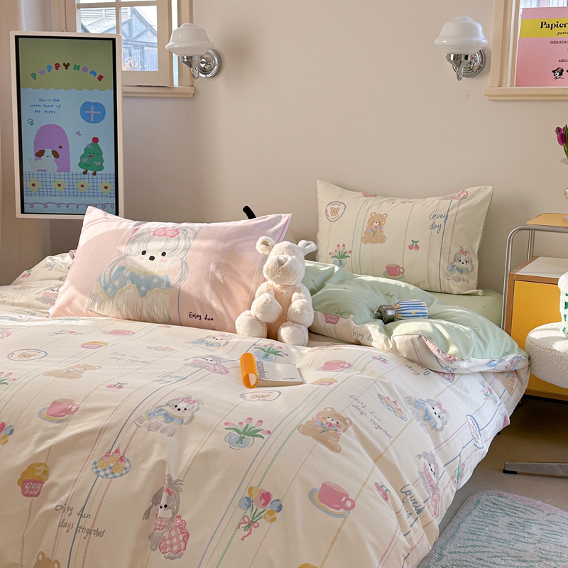 (总)时年 2021新款40S全棉印花四件套小可爱系列,贝尔先生,彩虹云朵,花西子,欢乐字母,金刚,奇思妙想,气球皮皮,树林生活