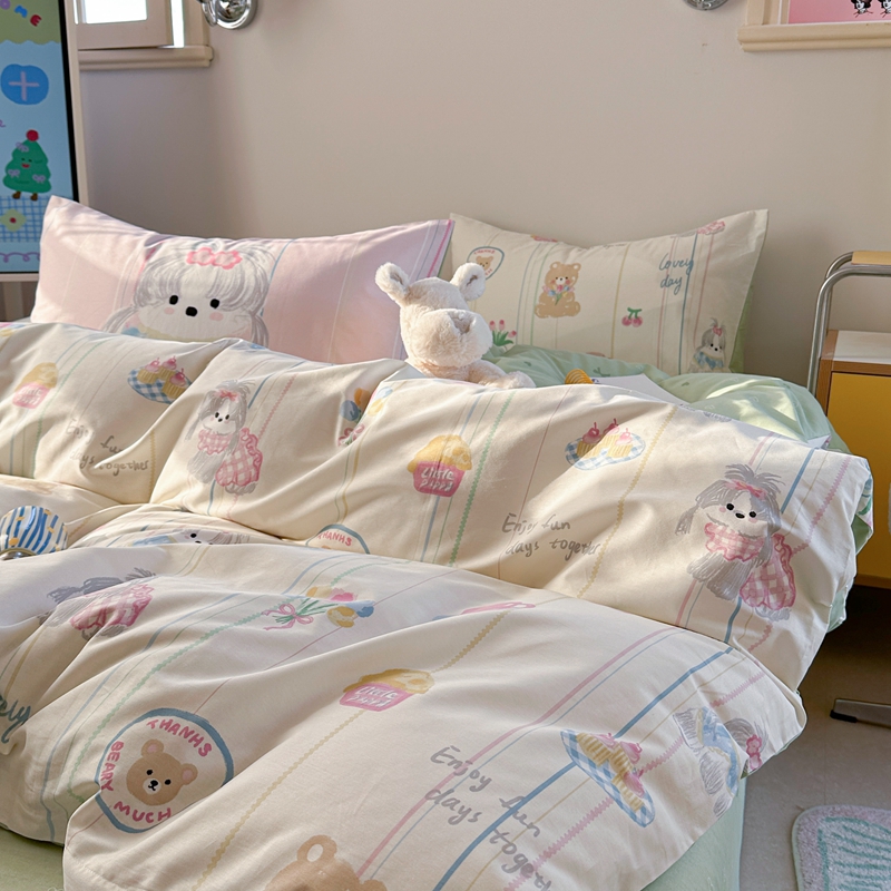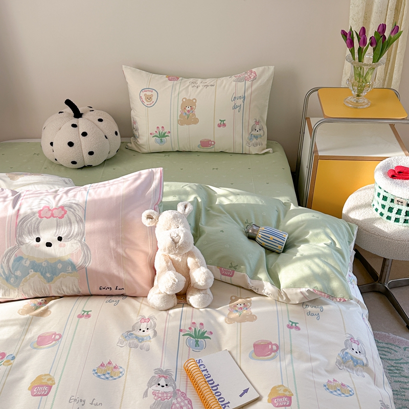 (总)时年家纺 2025新款全棉磨毛大版卡通印花系列套件,趣味熊,爱心熊,安静小象,波点兔,可爱熊宝,萌宝,奶油玩偶,小奥汀,慵懒猫咪