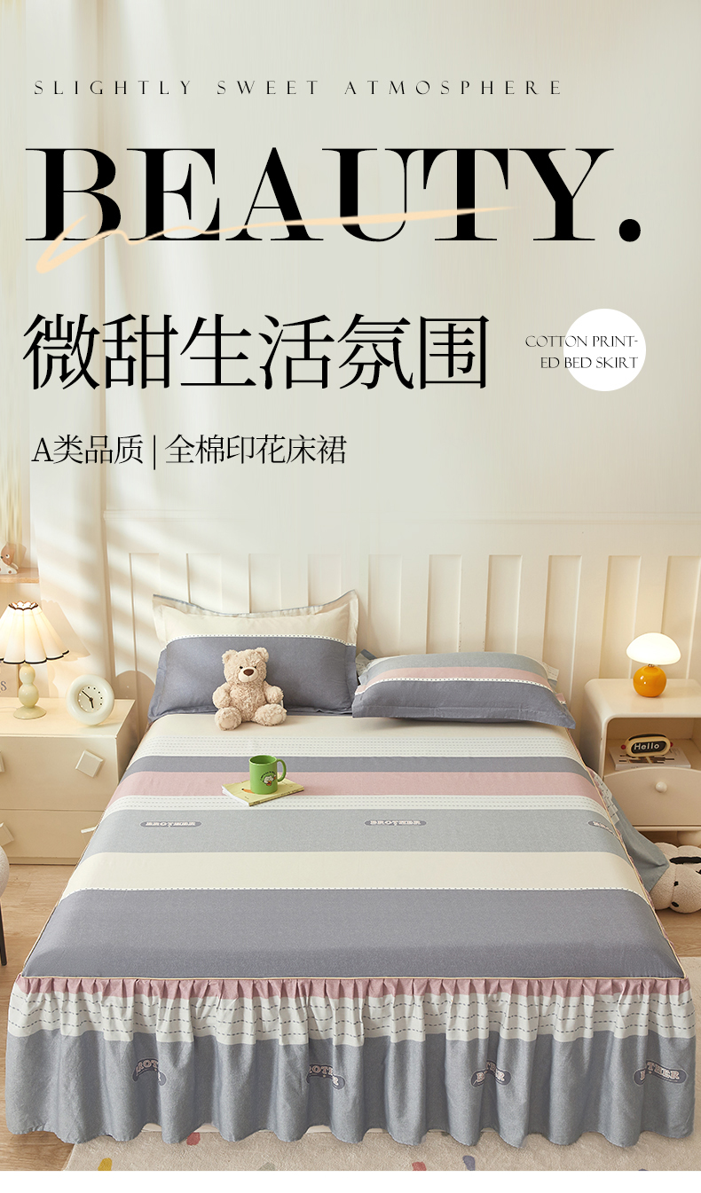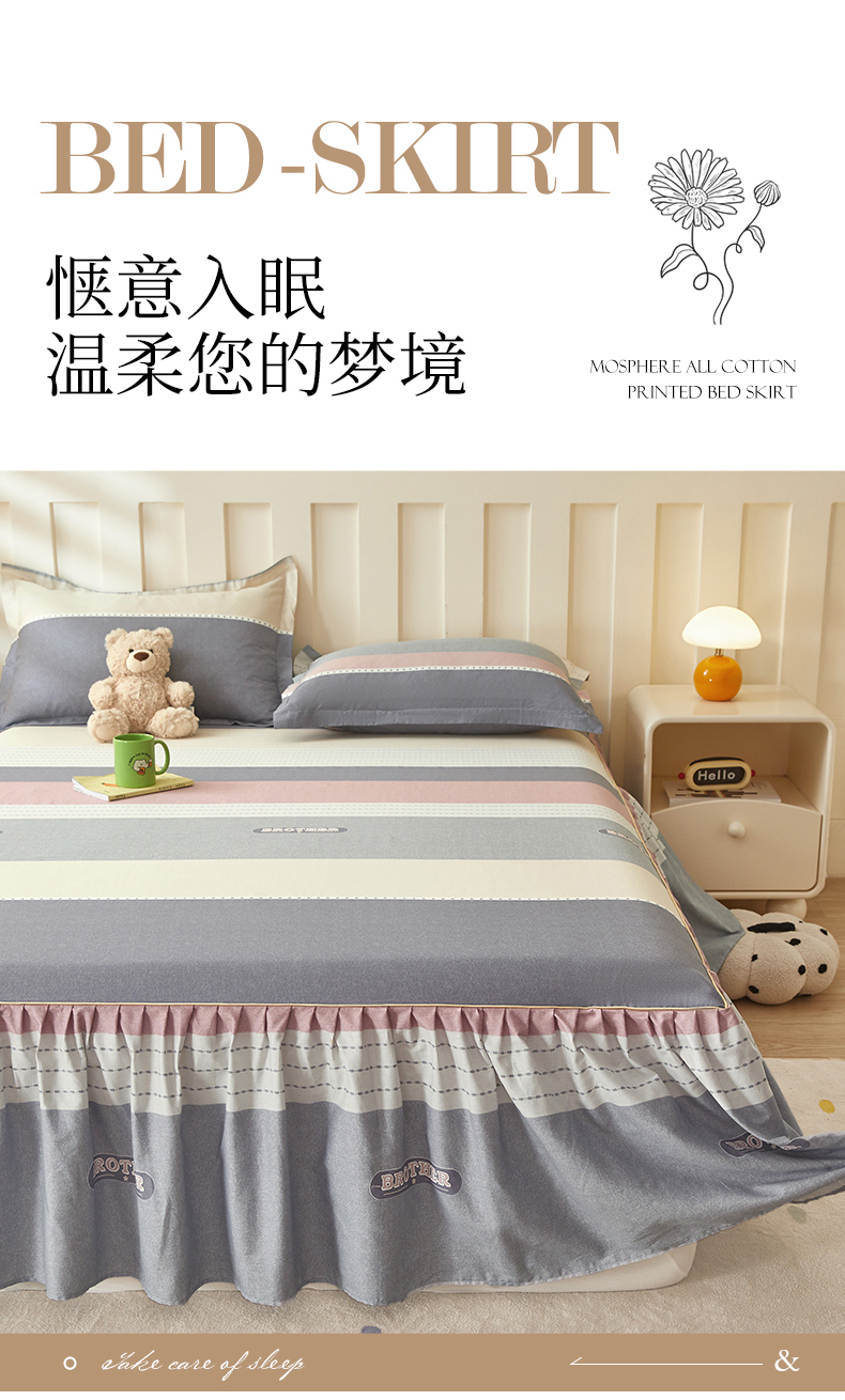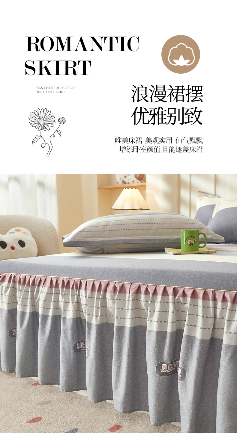 商品名称:(总)名优家纺 2025新款A类13070全棉纯棉韩版印花床裙
