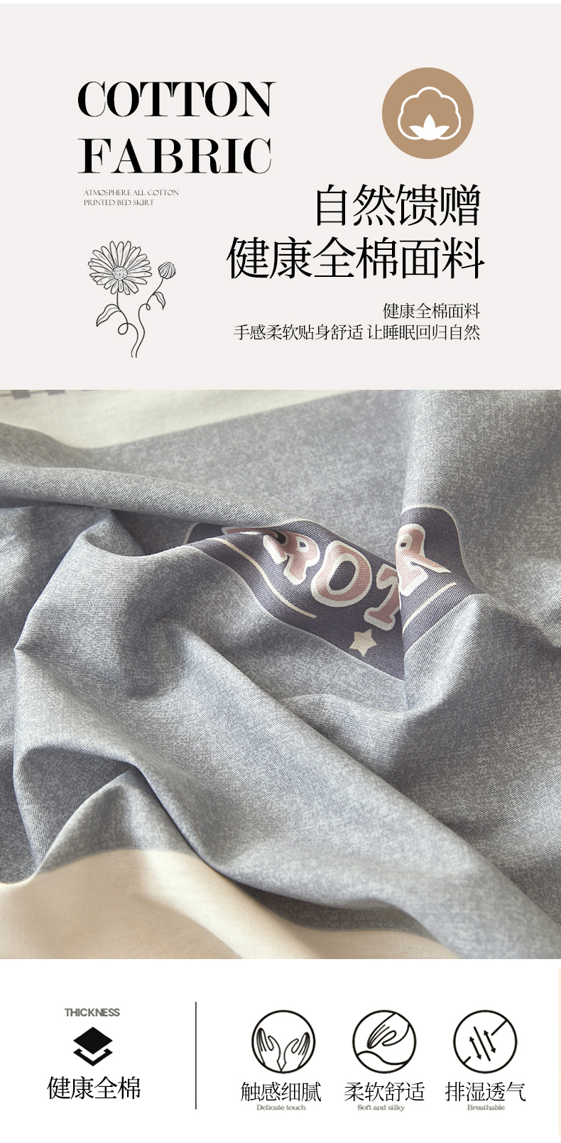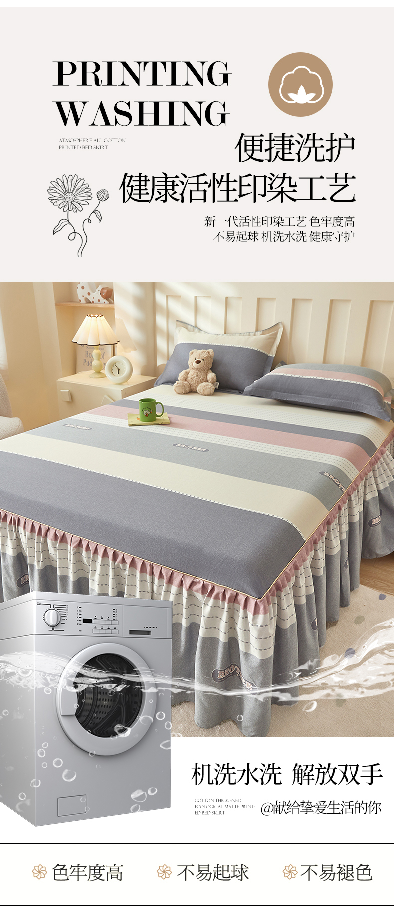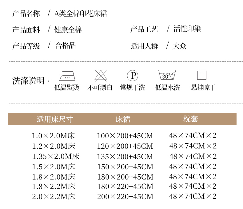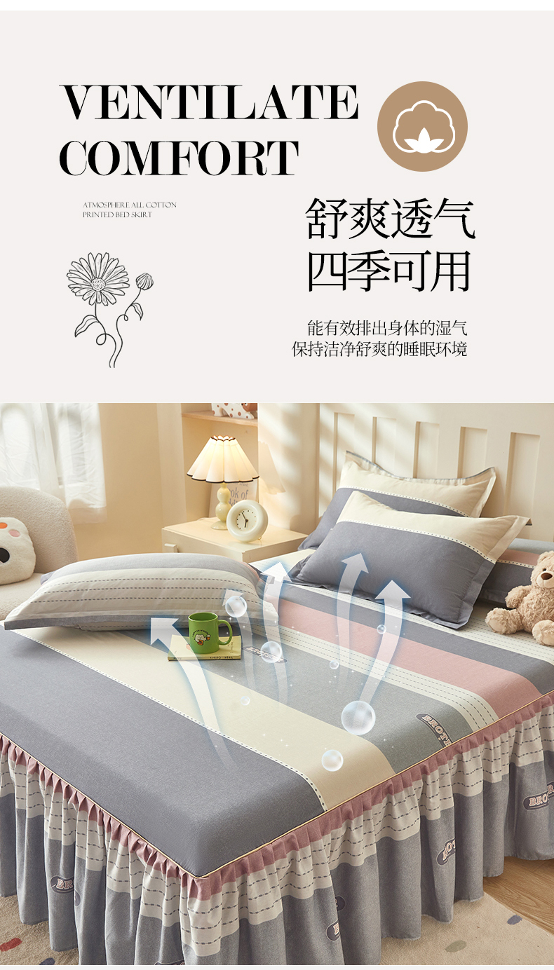 商品名称:(总)名优家纺 2025新款A类13070全棉纯棉韩版印花床裙