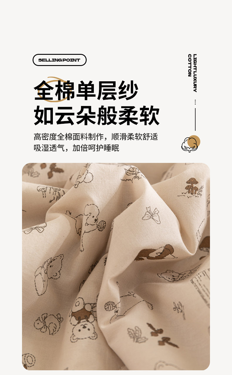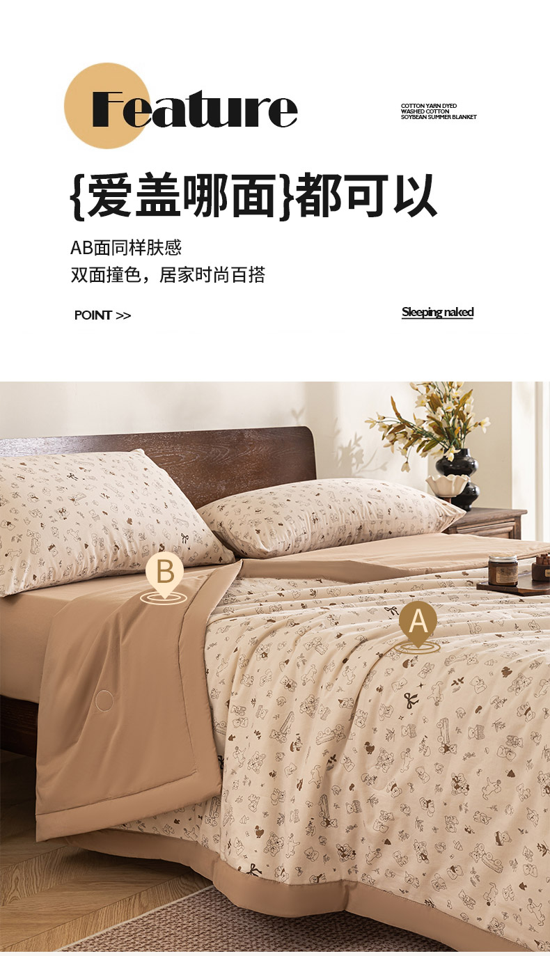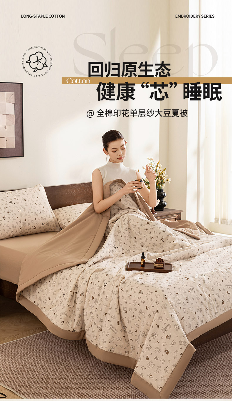 商品名称:(总)吾诺 2025 全棉印花单层纱大豆夏被四件套夏凉被空调被子被芯全棉夏被