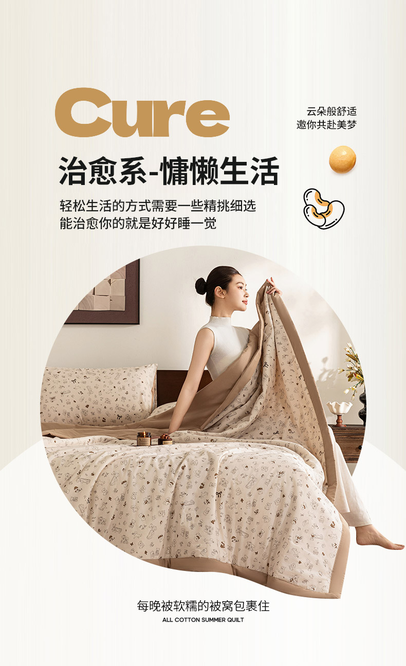 (总)吾诺 2025 全棉印花单层纱大豆夏被四件套夏凉被空调被子被芯全棉夏被