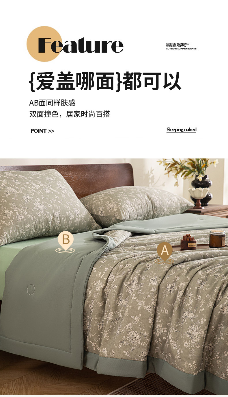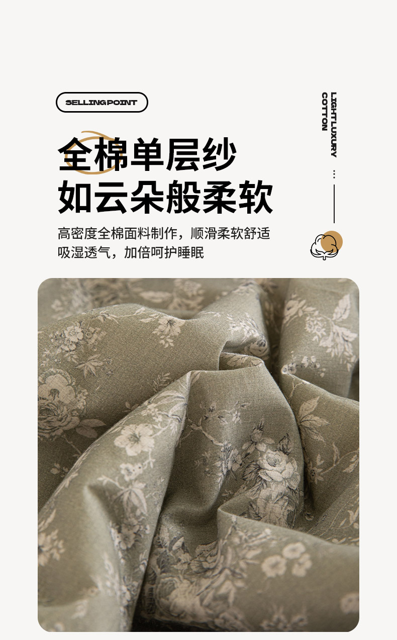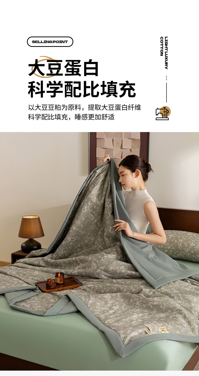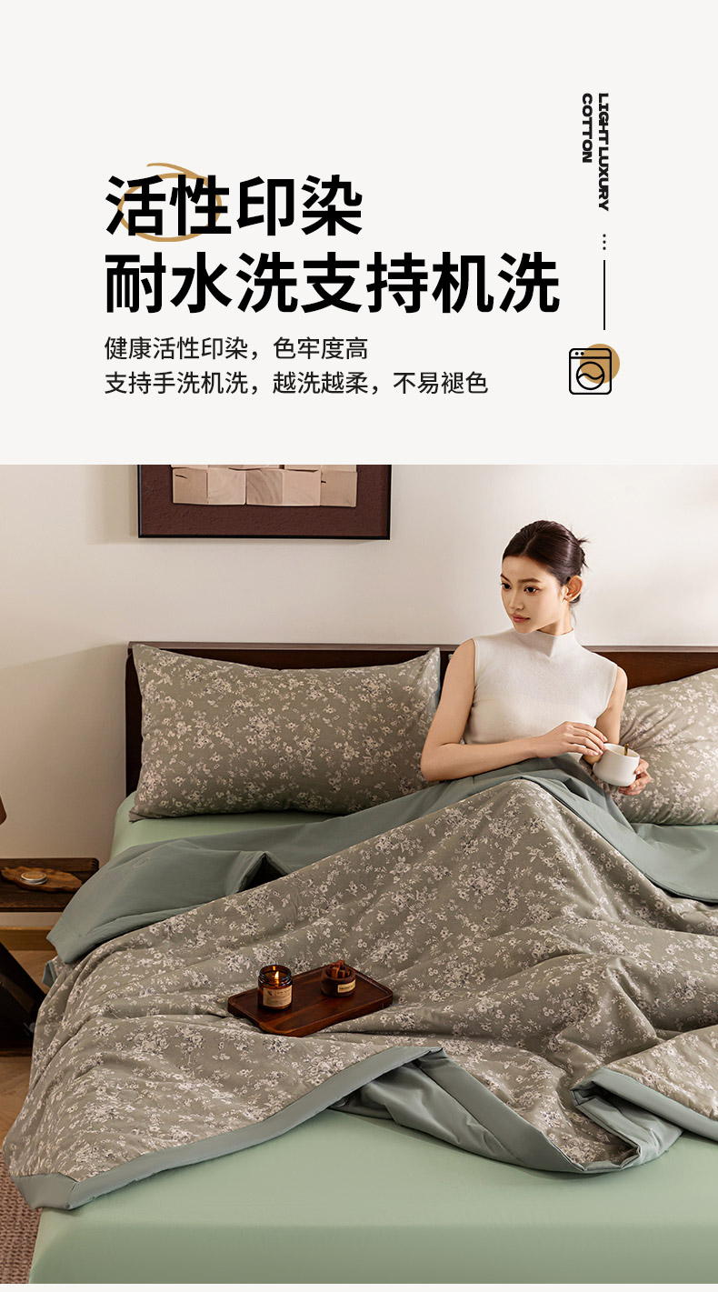 商品名称:吾诺 2025 全棉印花单层纱大豆夏被四件套夏凉被空调被子被芯全棉夏被 轻盈