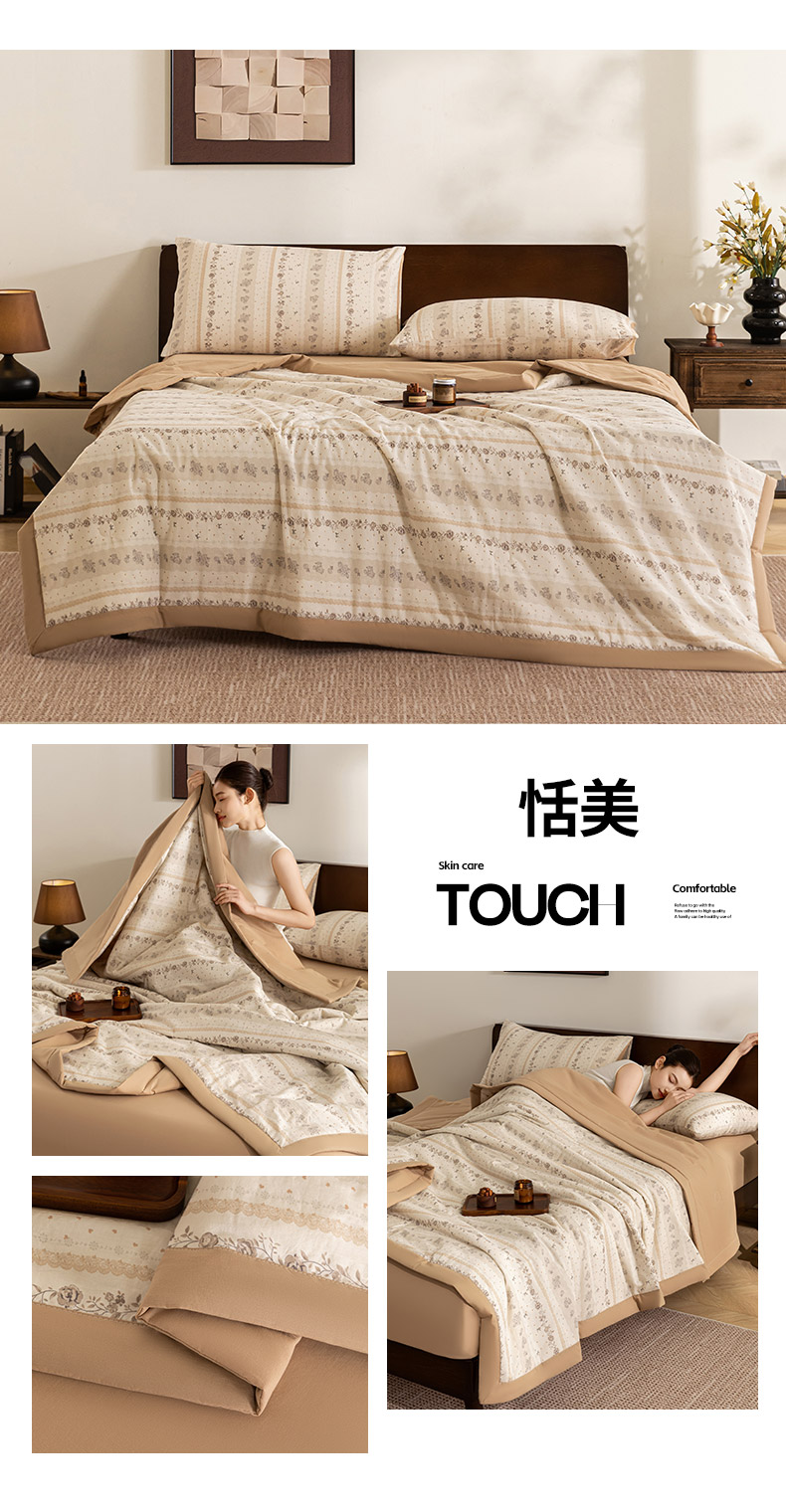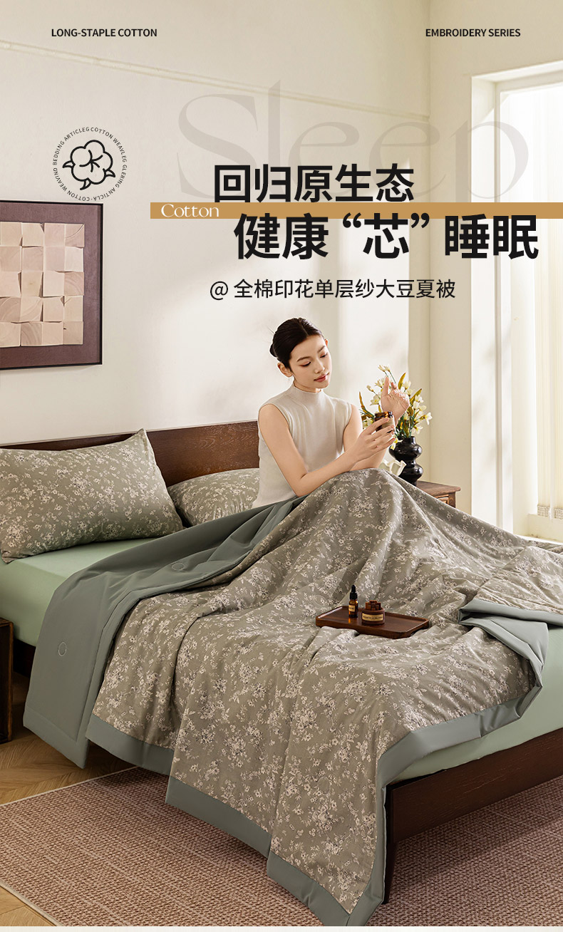 吾诺 2025 全棉印花单层纱大豆夏被四件套夏凉被空调被子被芯全棉夏被 轻盈