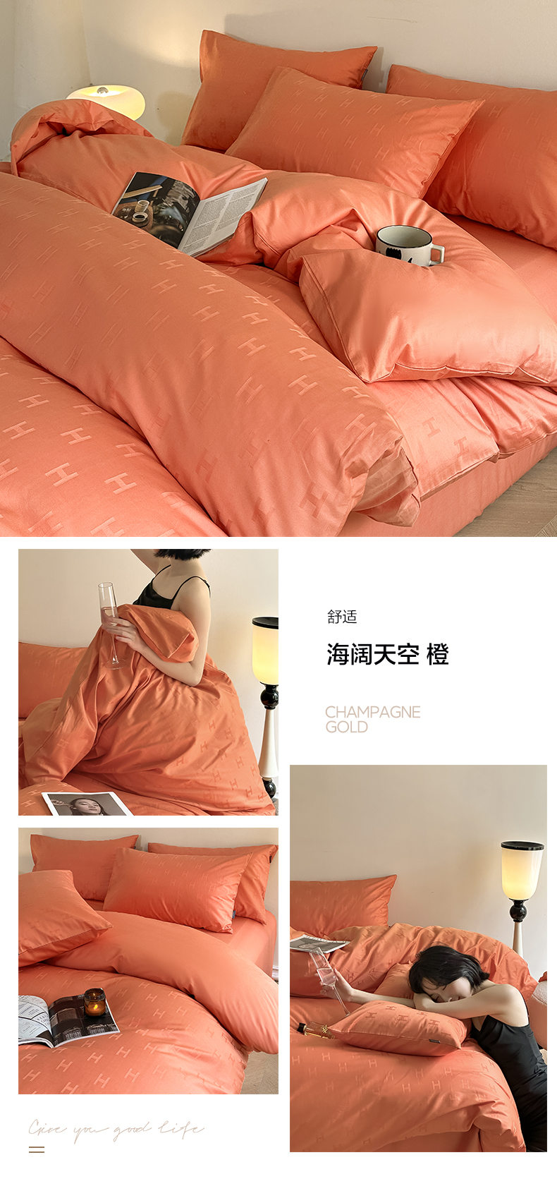 当前位置: 91家纺网 > 商品网购 > 床品套件 > 四件套 > 全棉普通四件套 > 2025新款60s长绒棉提花四件套系列1 海阔天空-橙