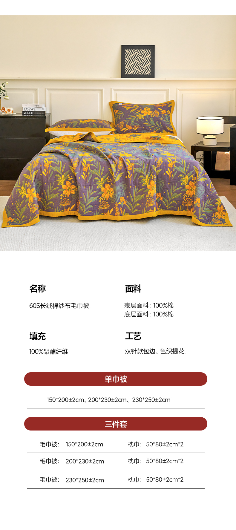 230*250±2cm 巾被+枕巾一对