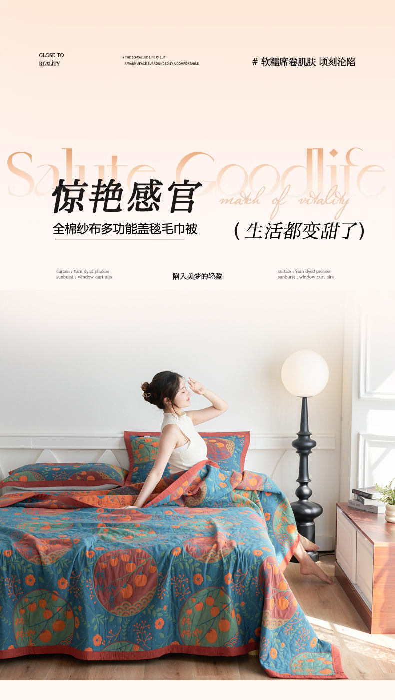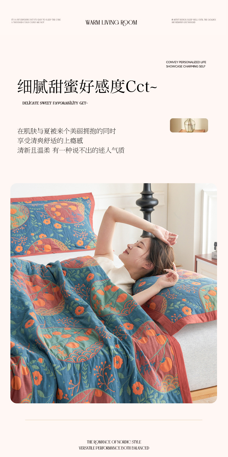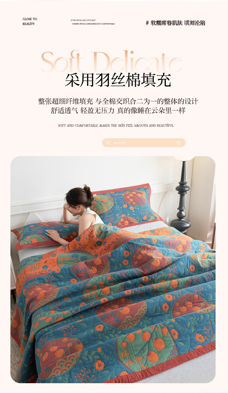 • 91家纺网 家纺一手货源 找家纺 棠薇家纺 2025新款60S长绒棉纯棉纱布毛巾被 柿柿如意