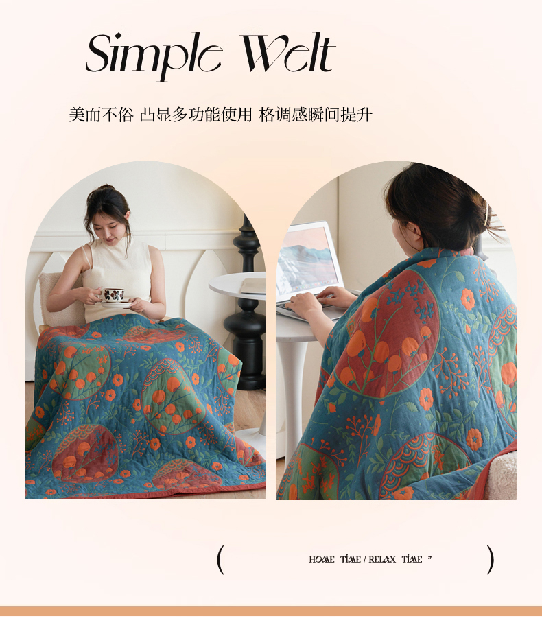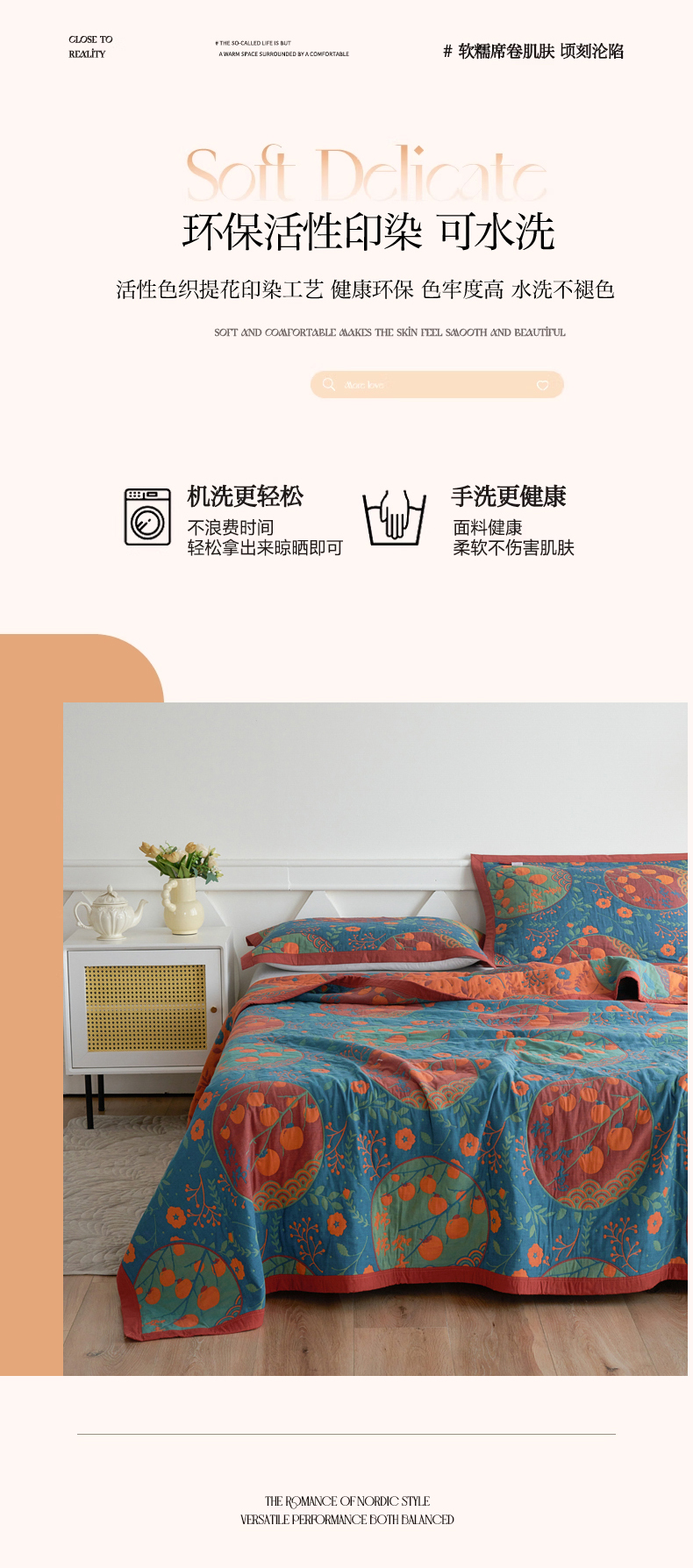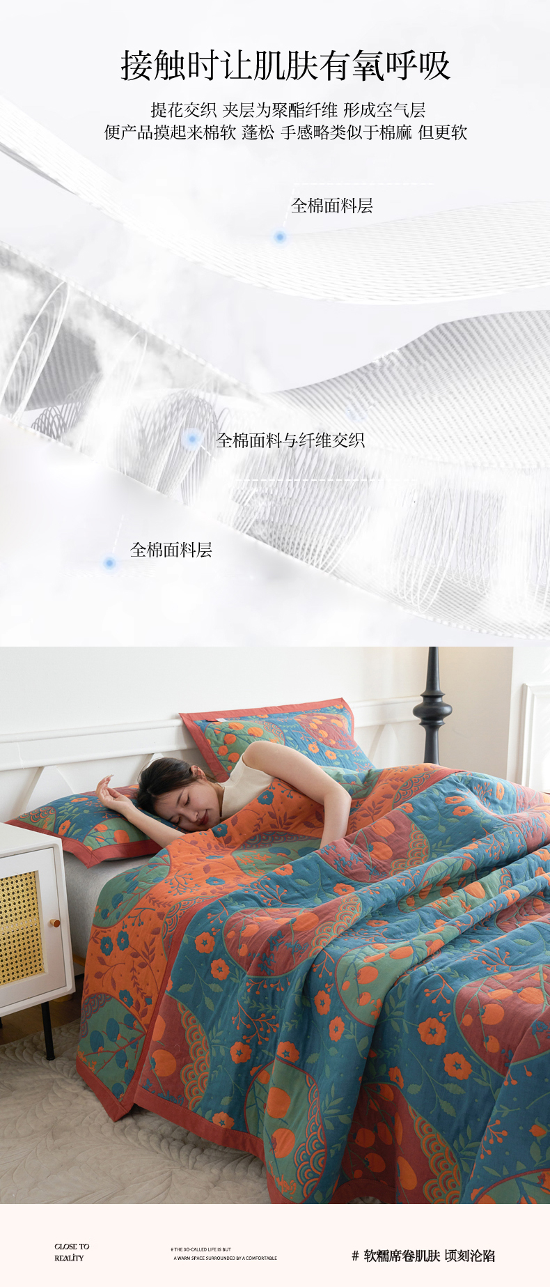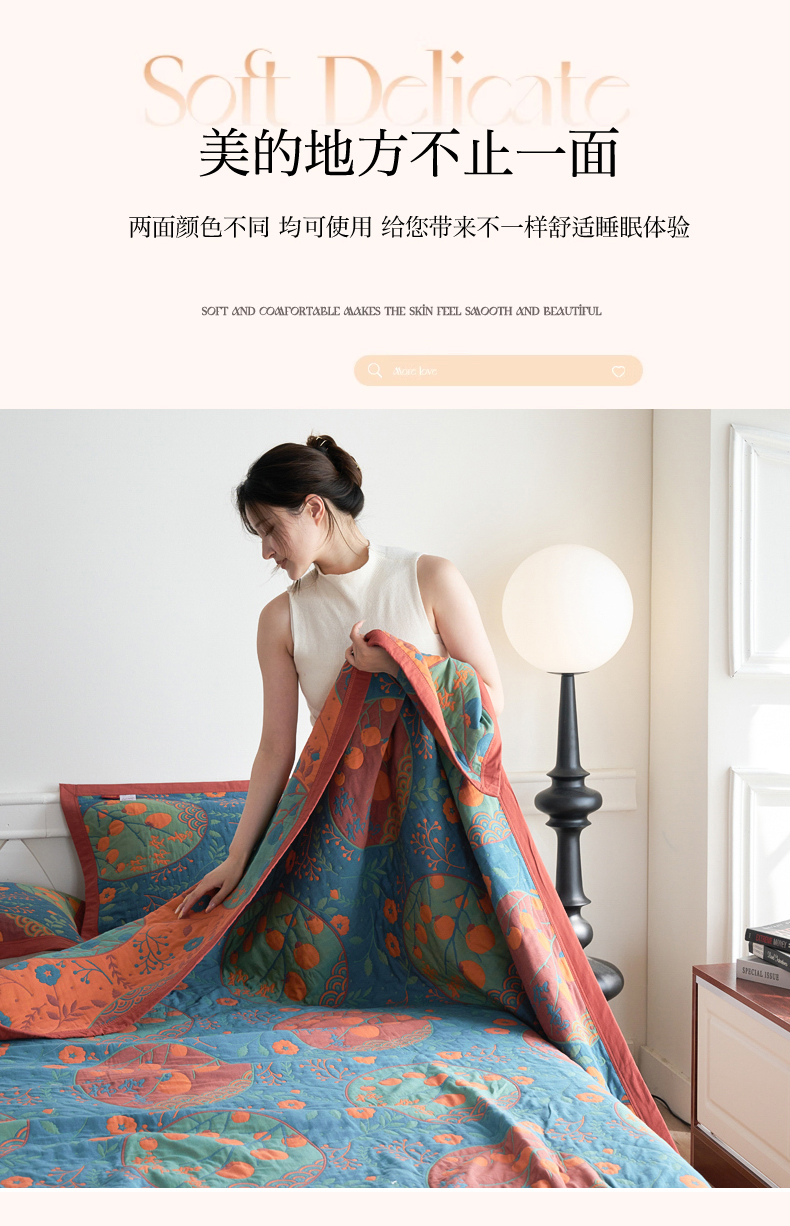 • 91家纺网 家纺一手货源 找家纺 棠薇家纺 2025新款60S长绒棉纯棉纱布毛巾被 柿柿如意