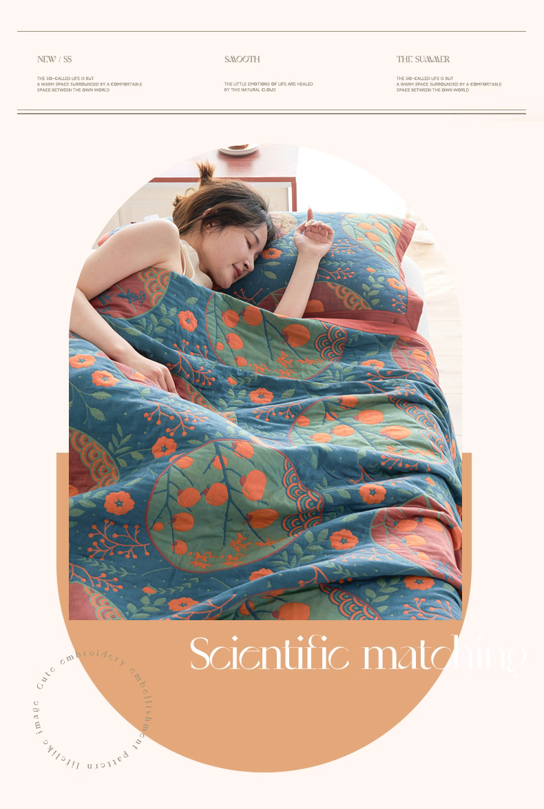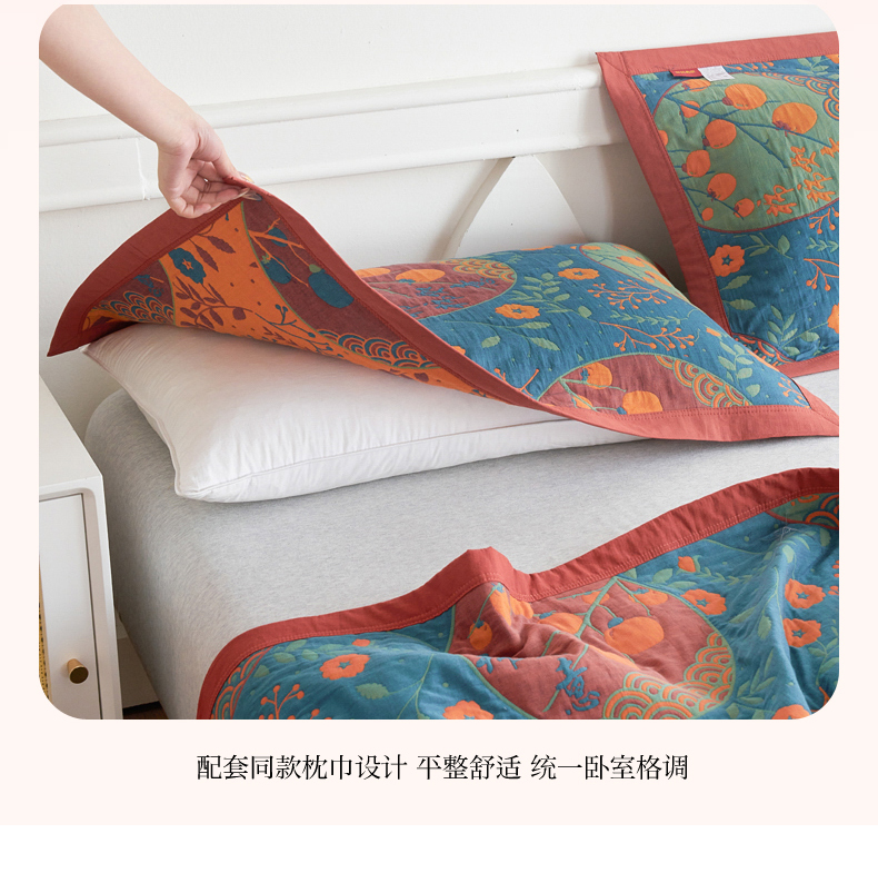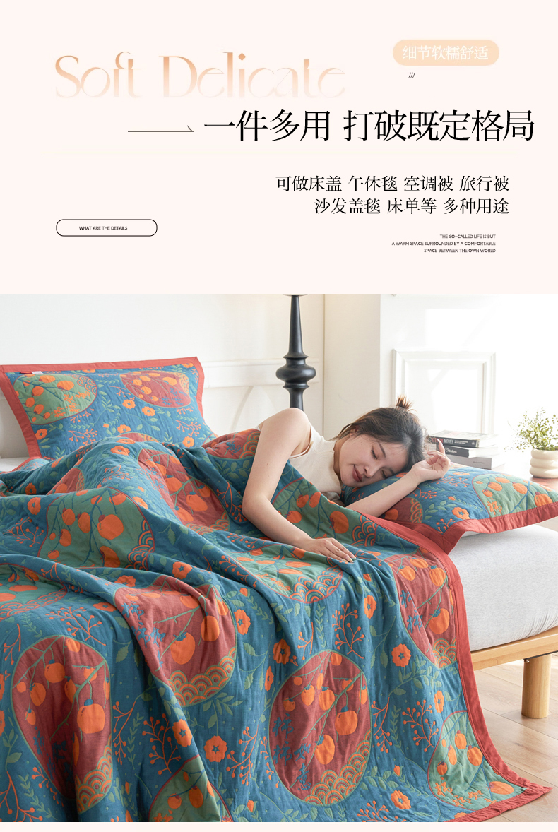 棠薇家纺 2025新款60S长绒棉纯棉纱布毛巾被 柿柿如意