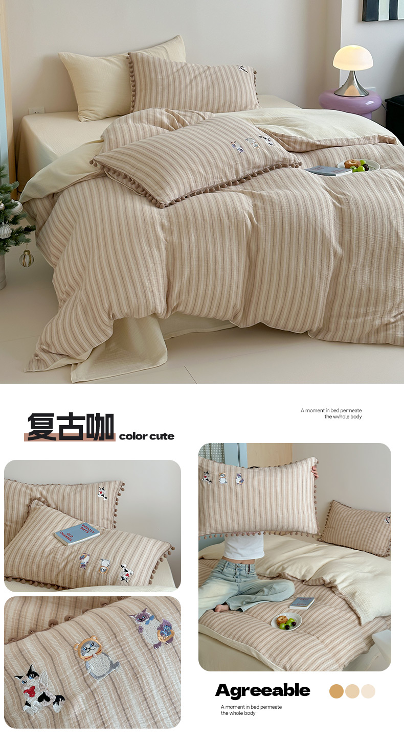 当前位置: 91家纺网 > 商品网购 > 床品套件 > 四件套 > 其它四件套 > 卡巴伦2025新款a类双层色织皱皱纱精美绣花球球款控价标准不低于288 复古咖