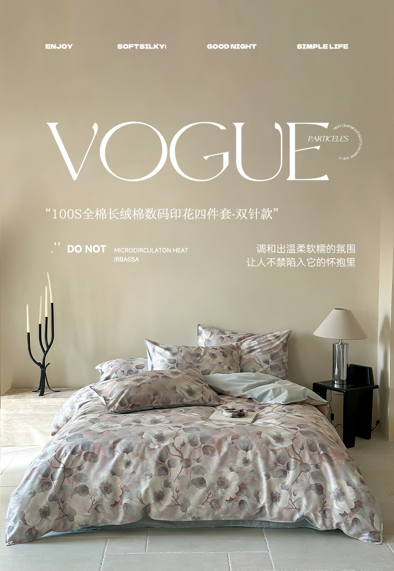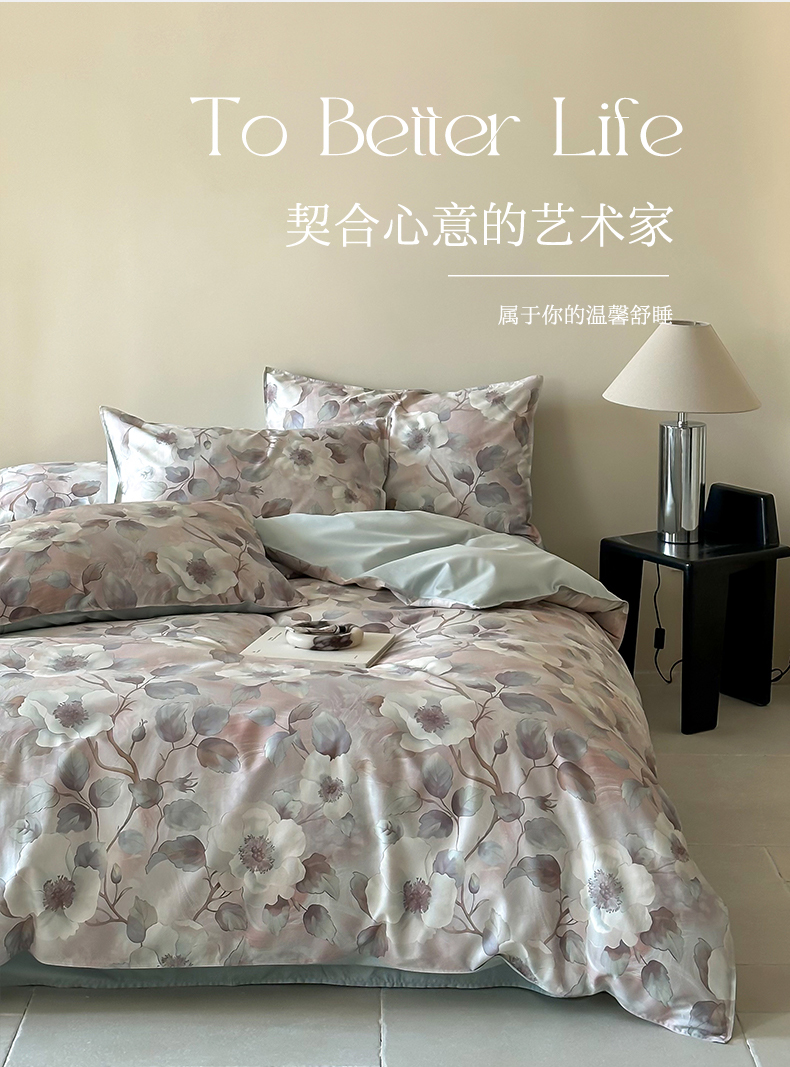 FORTWO家纺原创设计(FOR TWO家纺) 2025新款50花卉印花双针款四件套 西西里