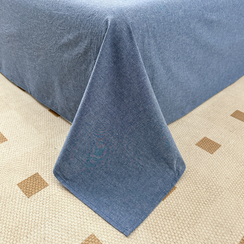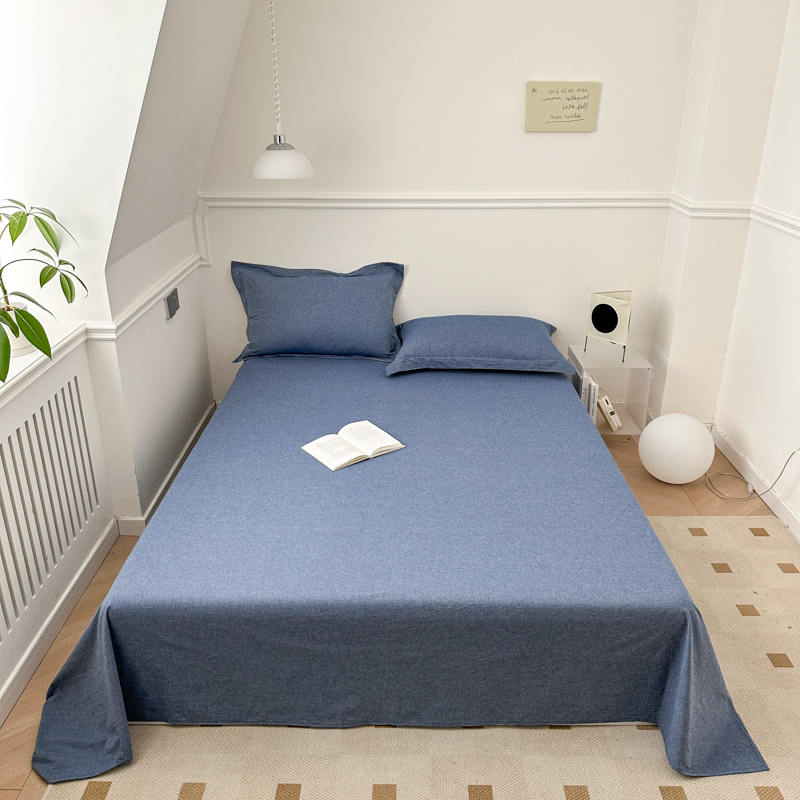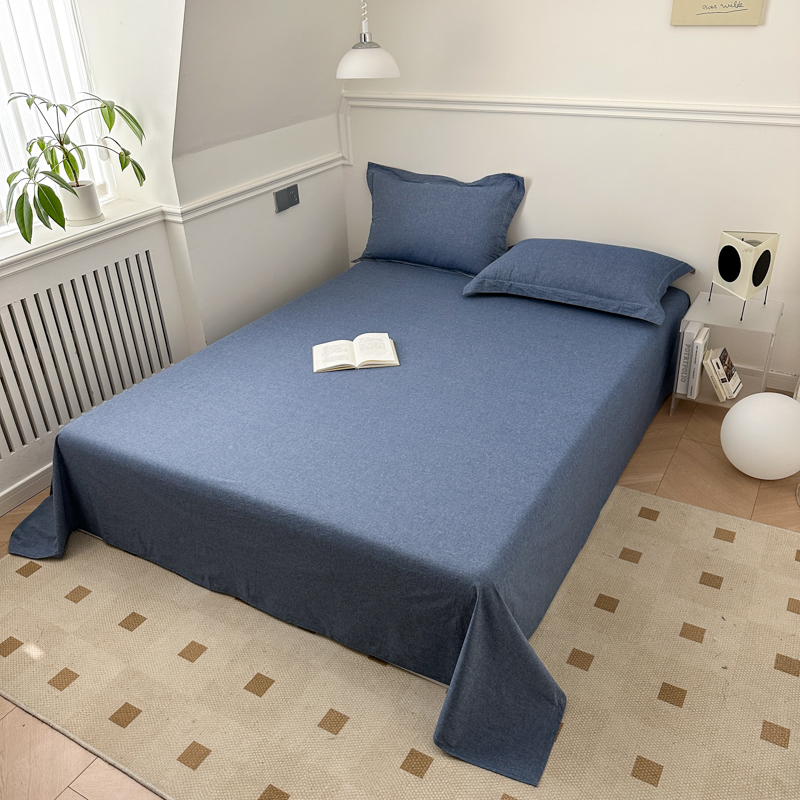 嘉汀兰家居 2025新款A类母婴级有氧全棉色织水洗棉小清新印花床单单品单床单床单单件 牛仔蓝