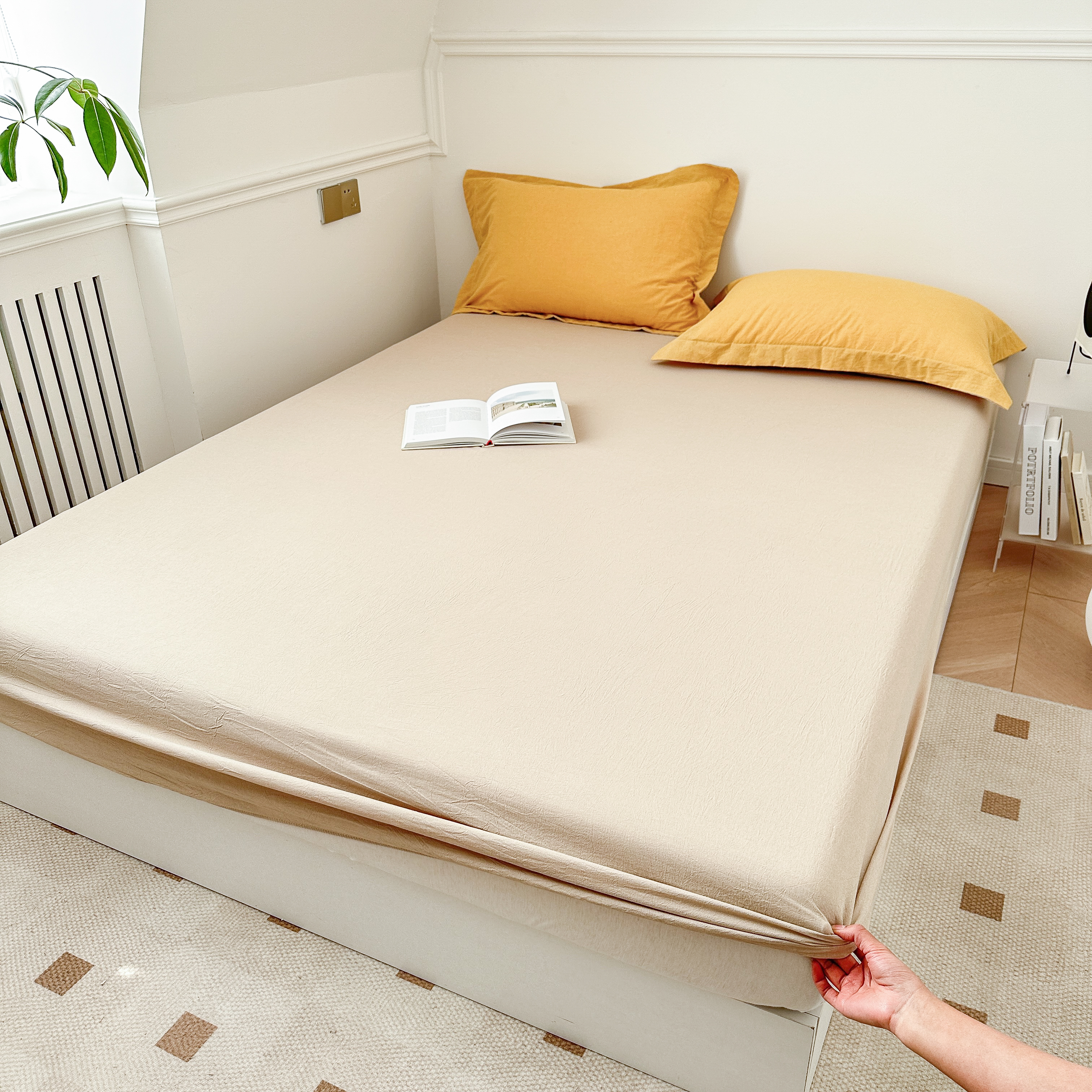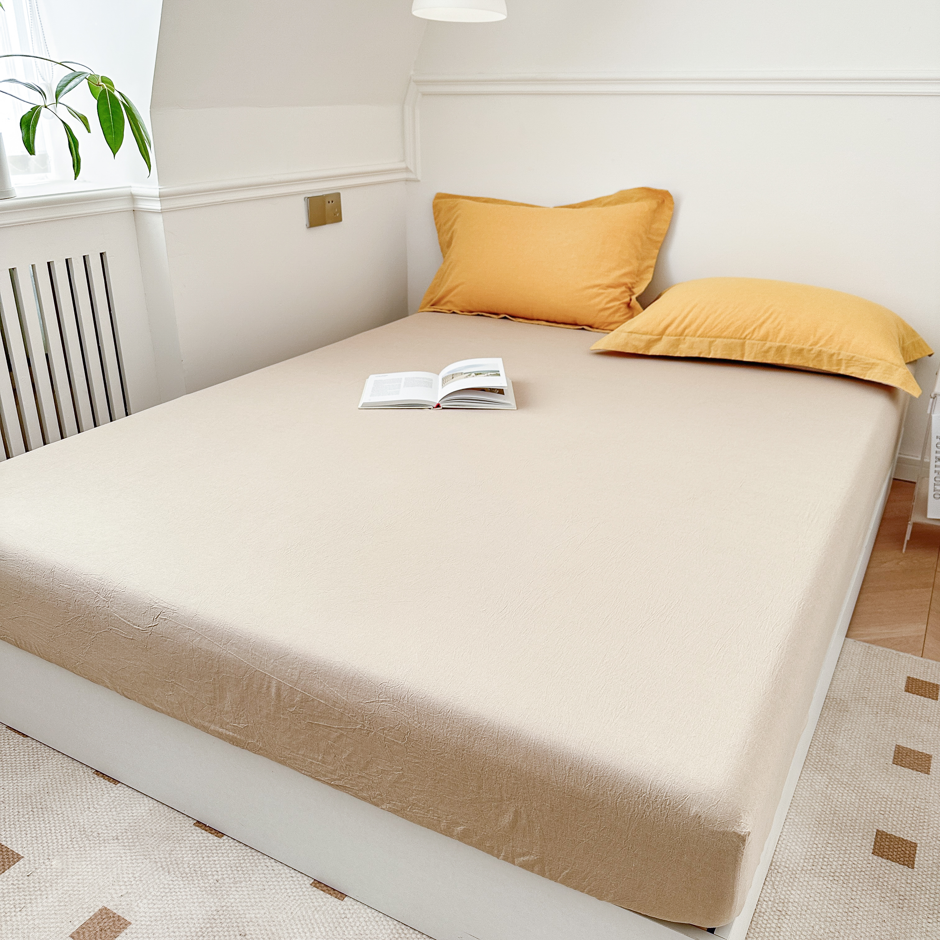 嘉汀兰家居 2025新款A类母婴级有氧全棉纯棉双层纱小清新印花床笠单品单床笠床笠单件 驼米