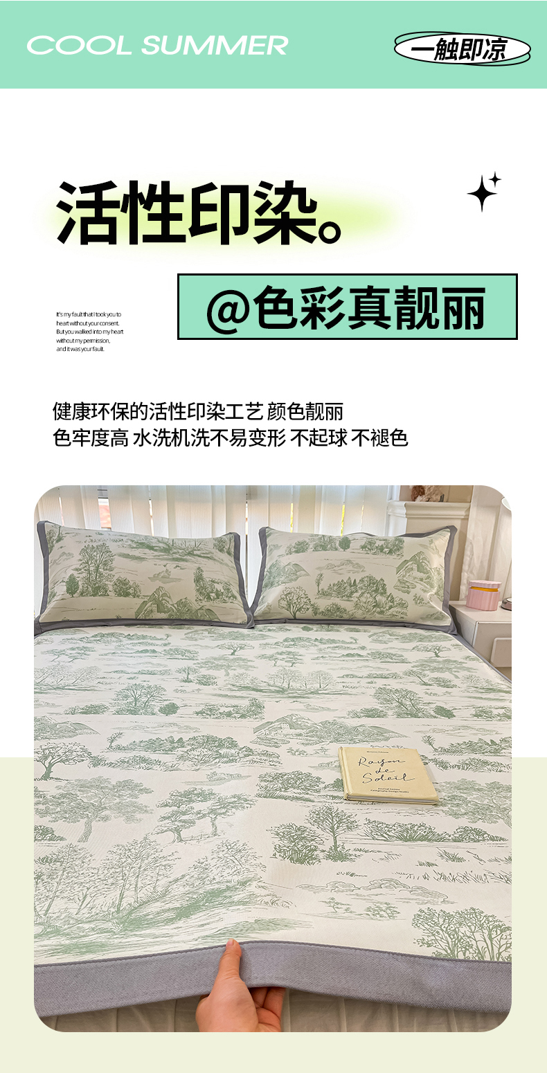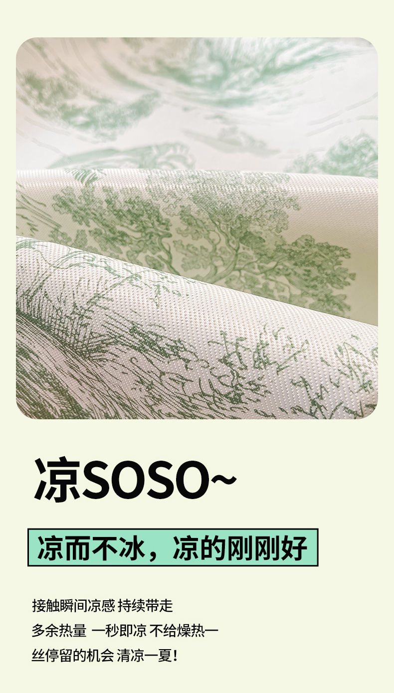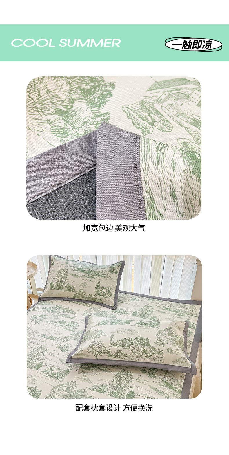 商品名称:川悦生活 2025新款600D立体宽边冰丝印花凉席 复古欧庭-绿