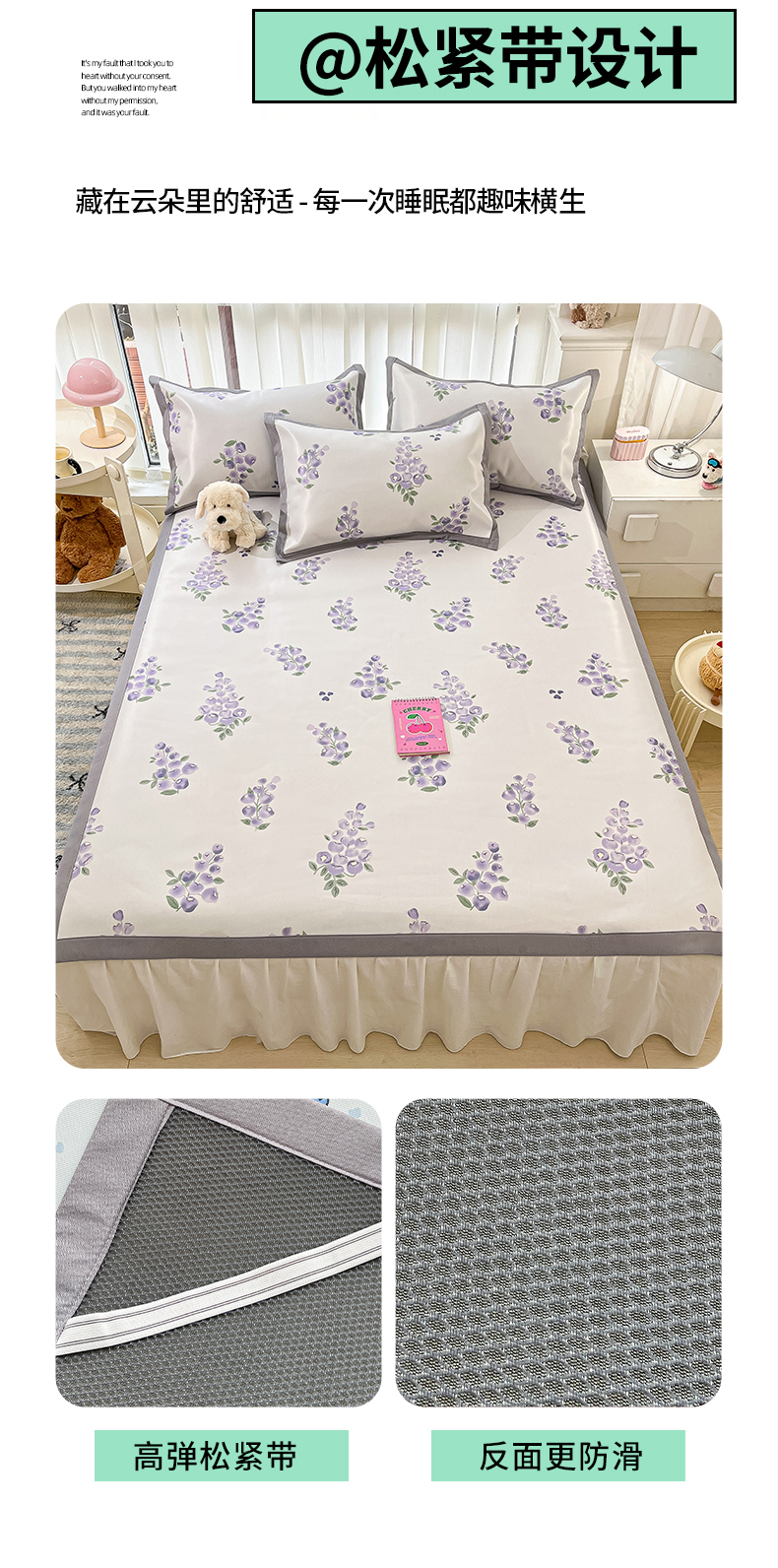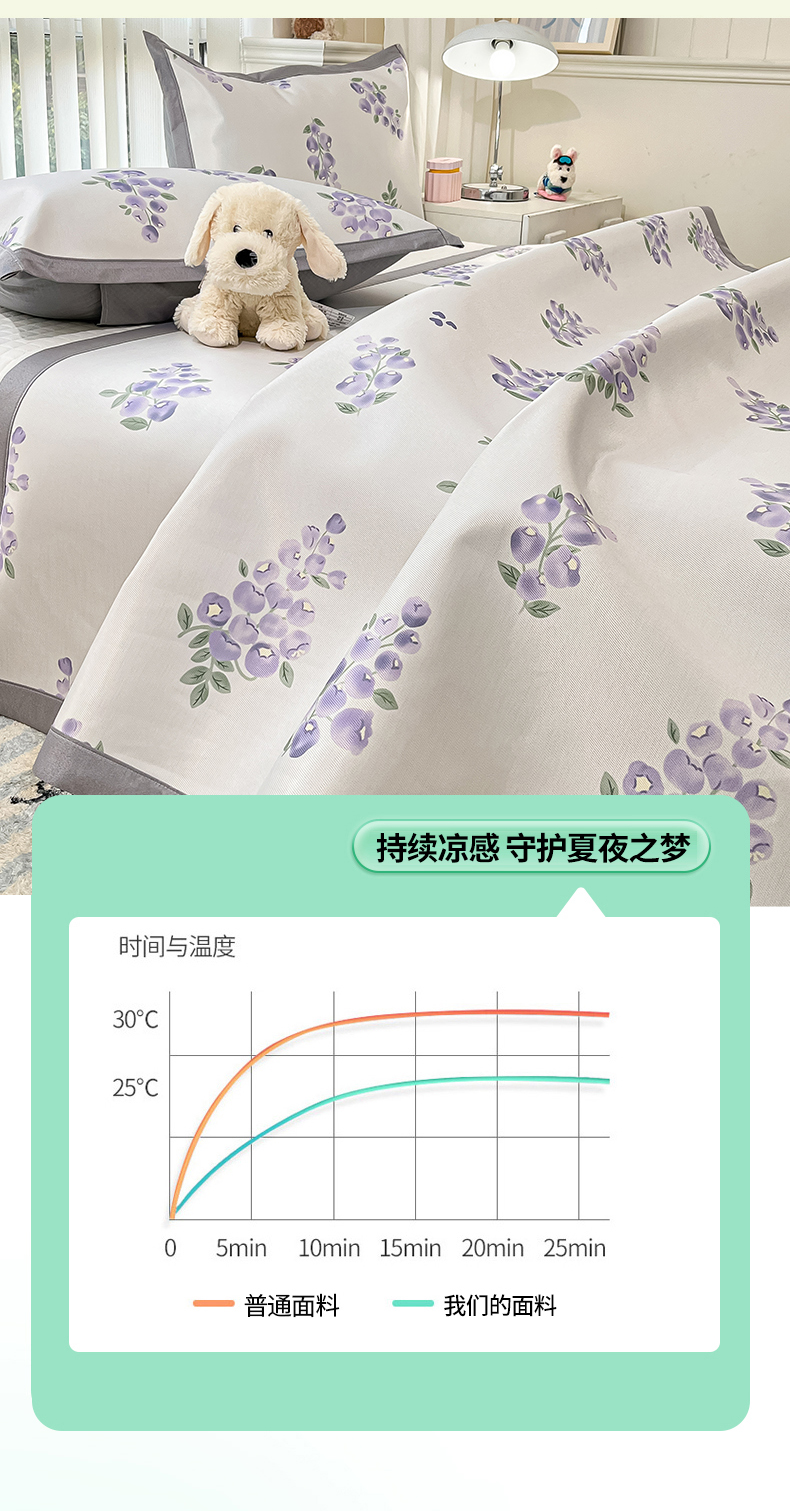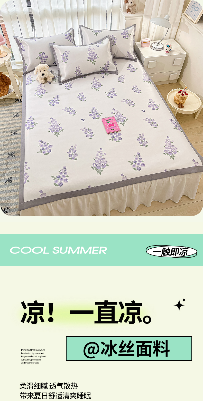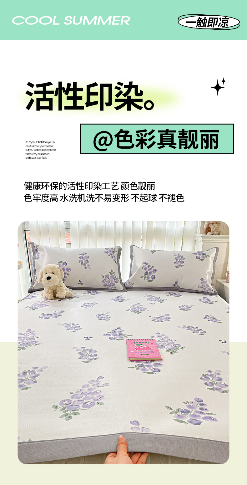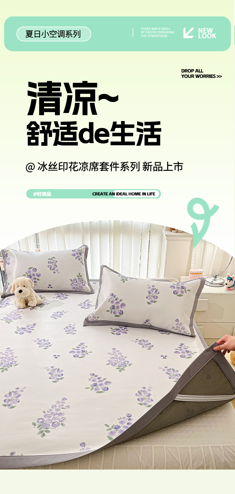川悦生活 2025新款600D立体宽边冰丝印花凉席 香月花凌