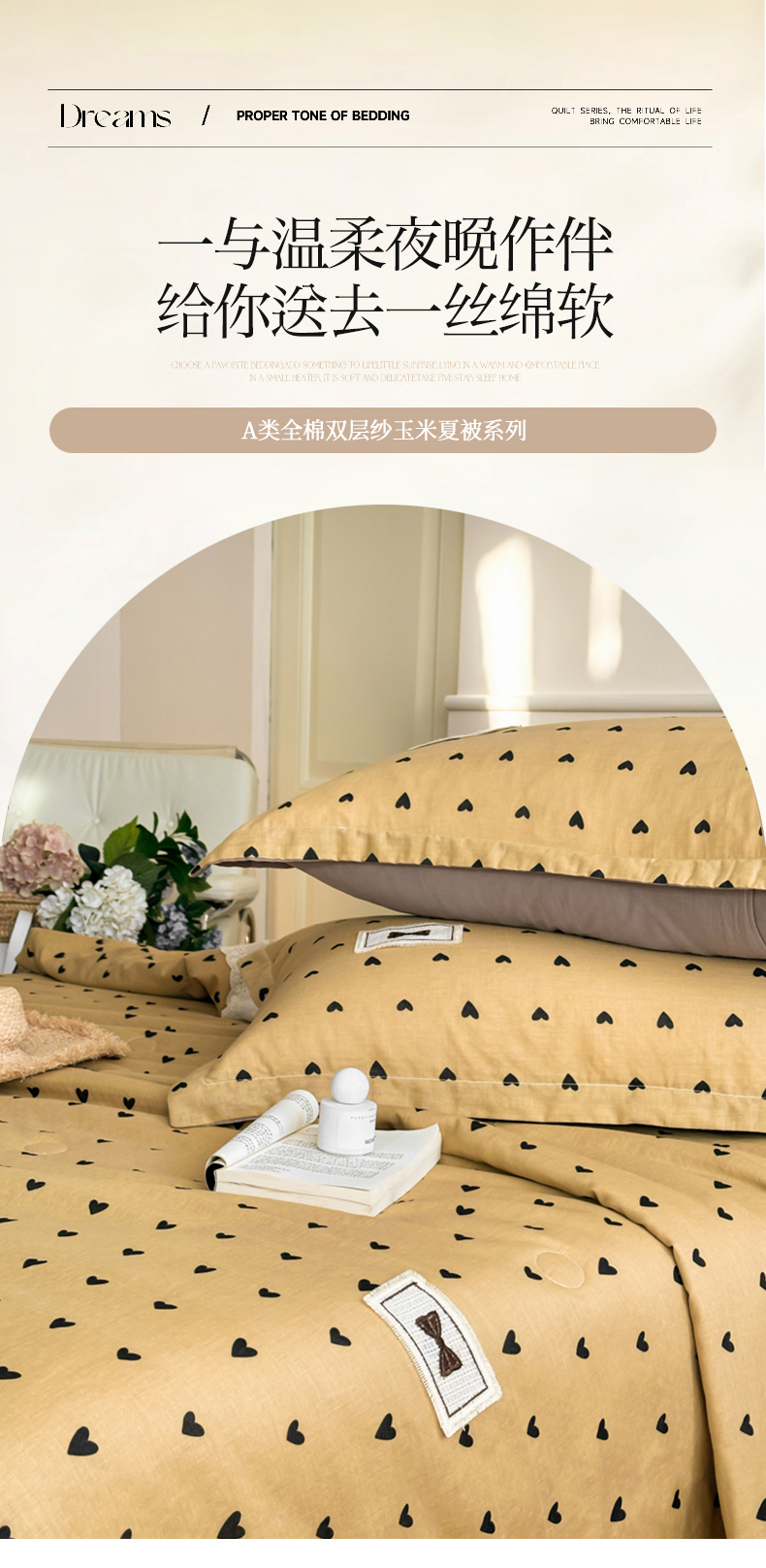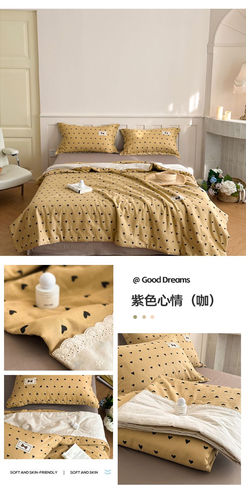 当前位置: 91家纺网 > 商品网购 > 床品套件 > 四件套 > 夏被四件套 > 帕拉美拉 2025新款全棉双层纱玉米聚乳酸夏被春秋被冬被玉米被 三件套四件套 紫色心情(咖)
