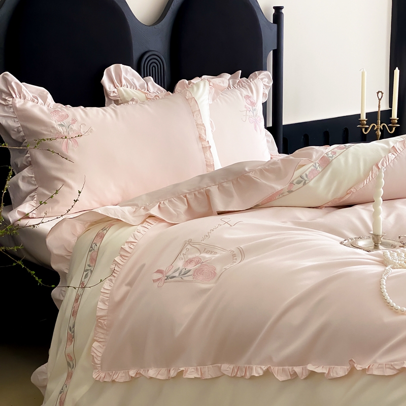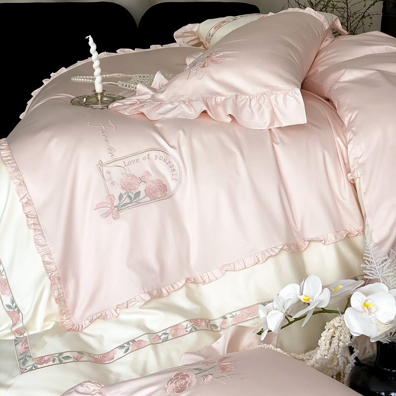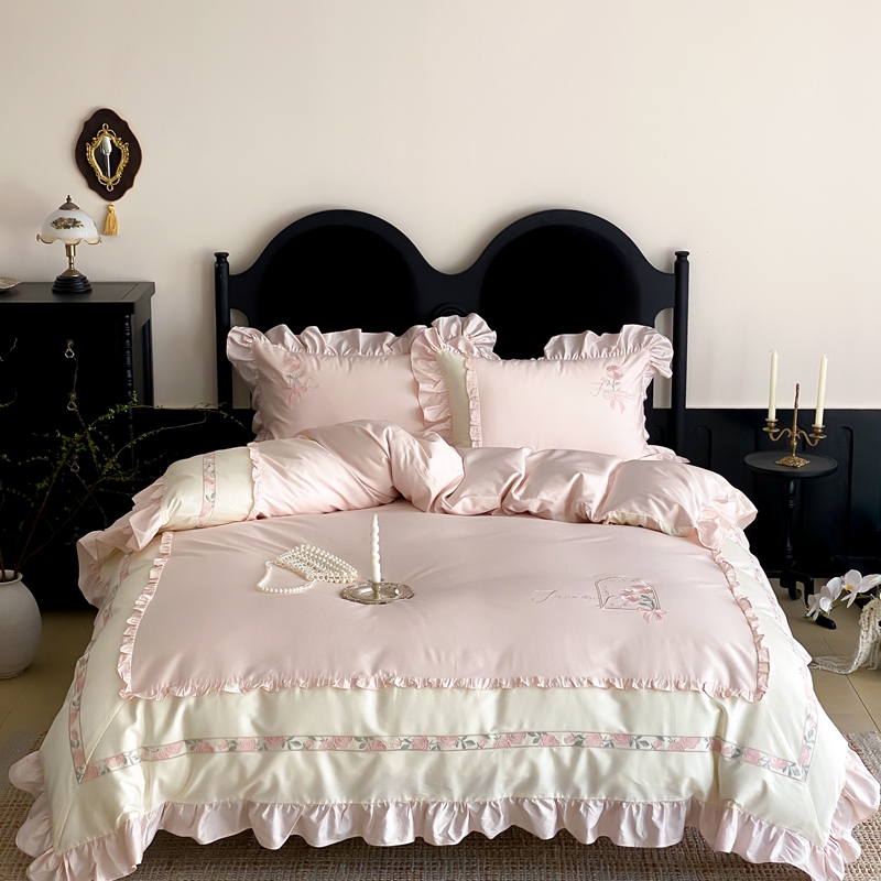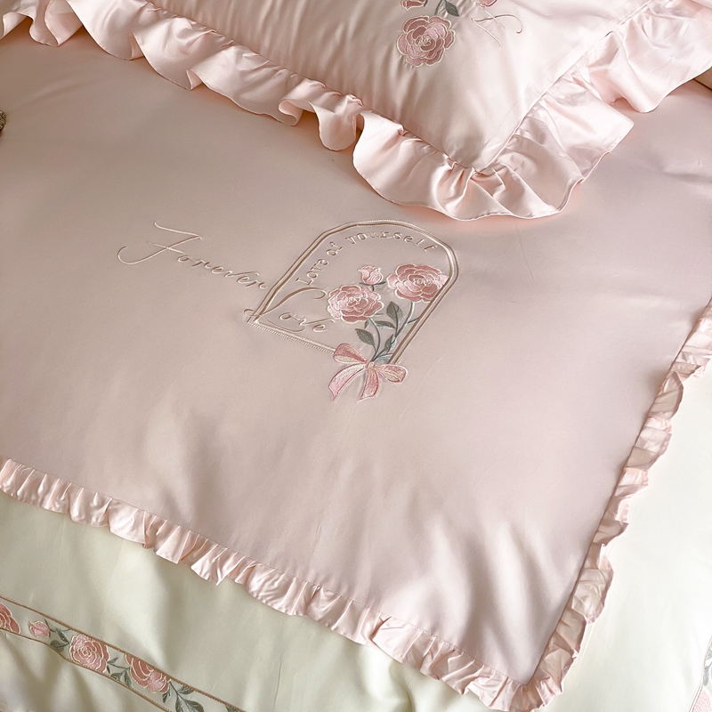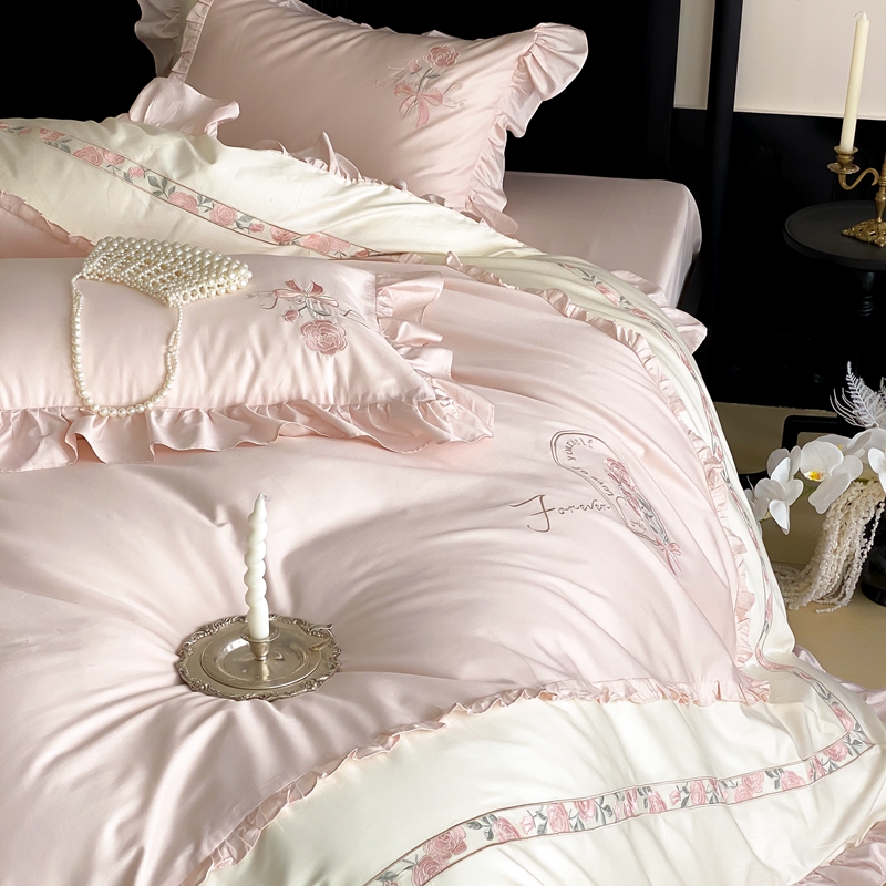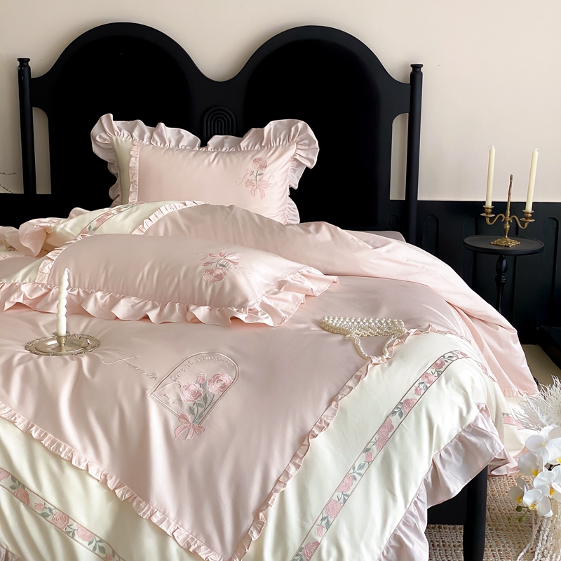 商品名称:MIU缪家居 2025新款100支全棉四件套-洛丽塔 洛丽塔-粉
